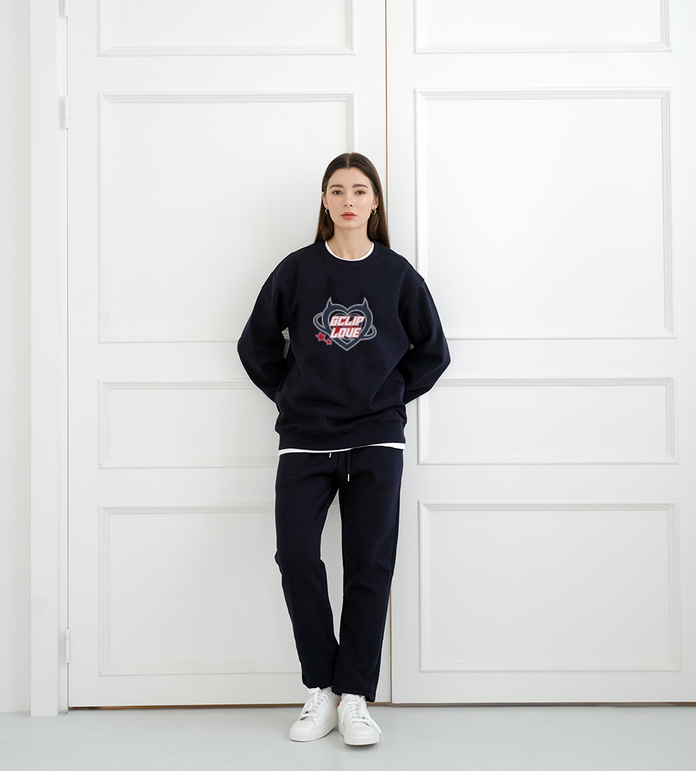 해피캘리 레글런 피그먼트 맨투맨 스모크블랙