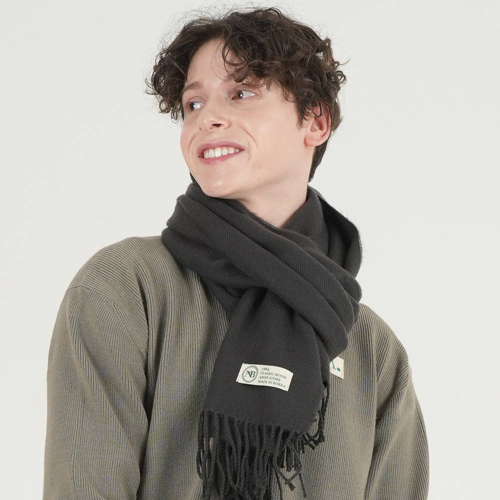 스트라이프 타이 니트 머플러 - 멜란지 그레이