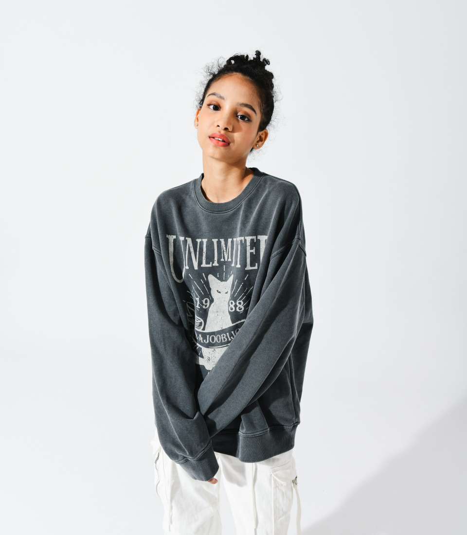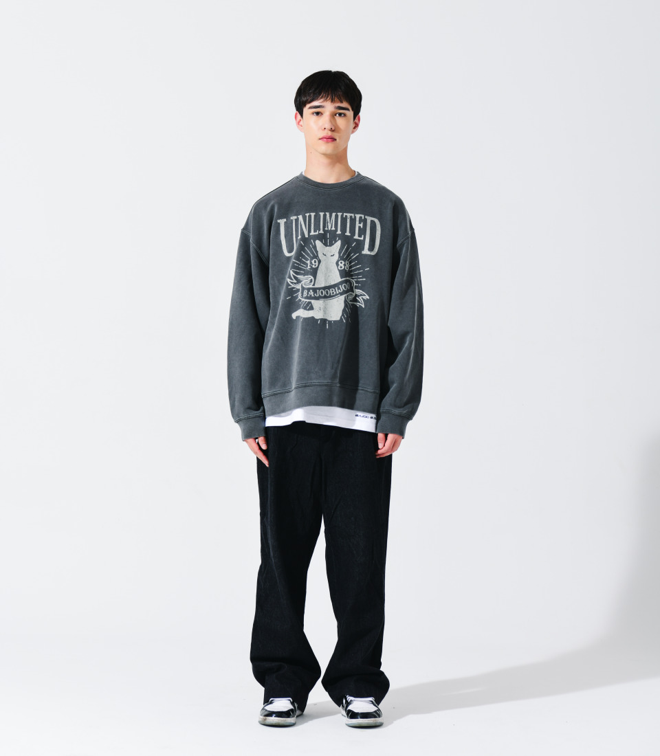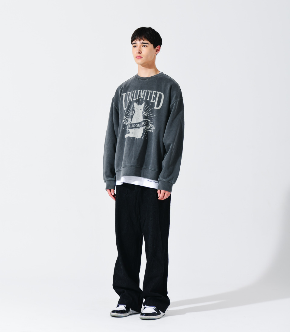 마이러브 레글런 피그먼트 맨투맨 스모크블랙