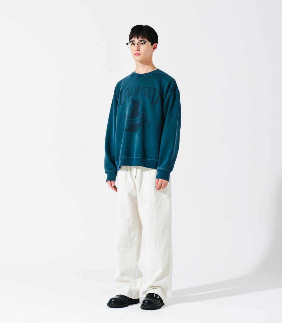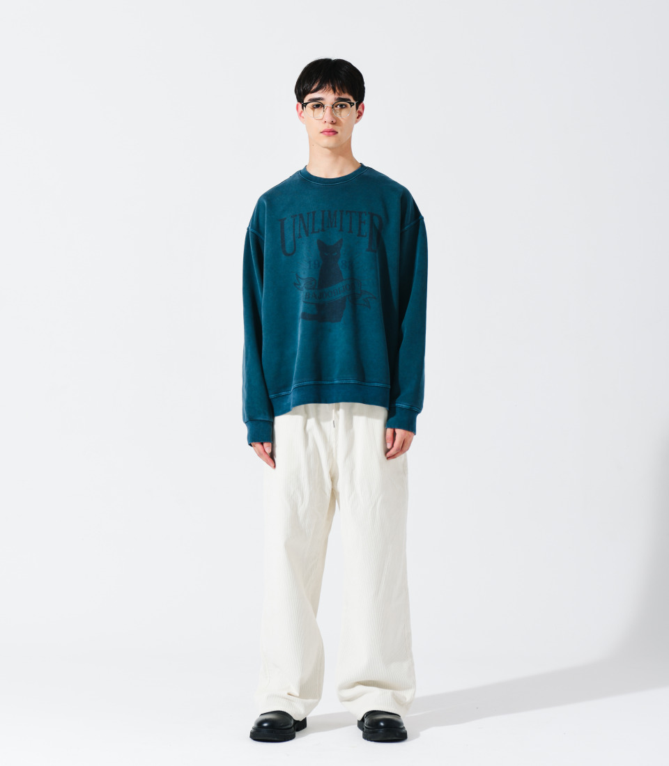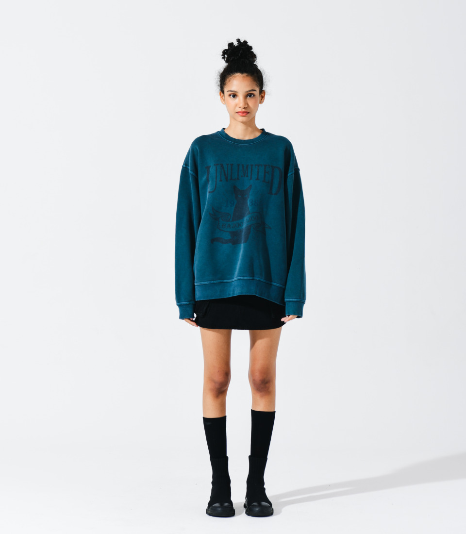 RIBBON CAT 레글런 피그먼트 맨투맨 스모크블랙