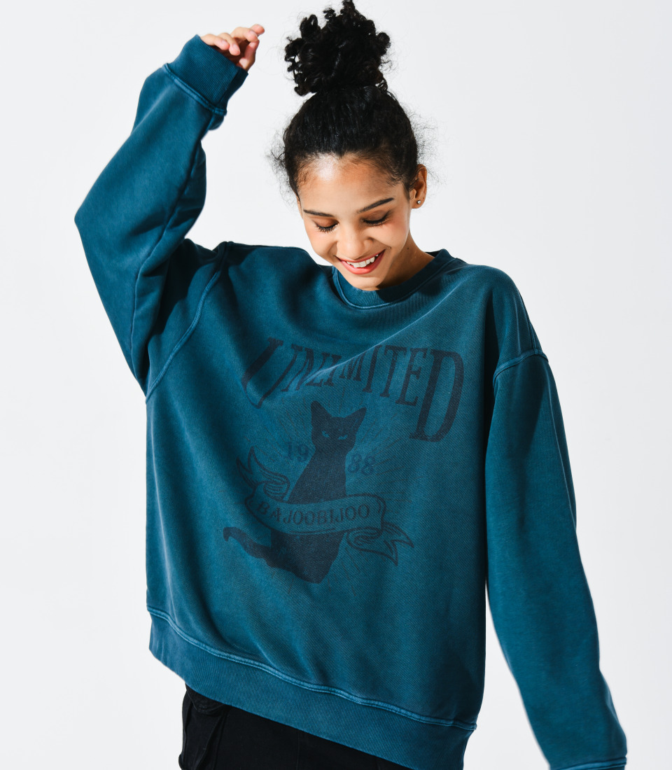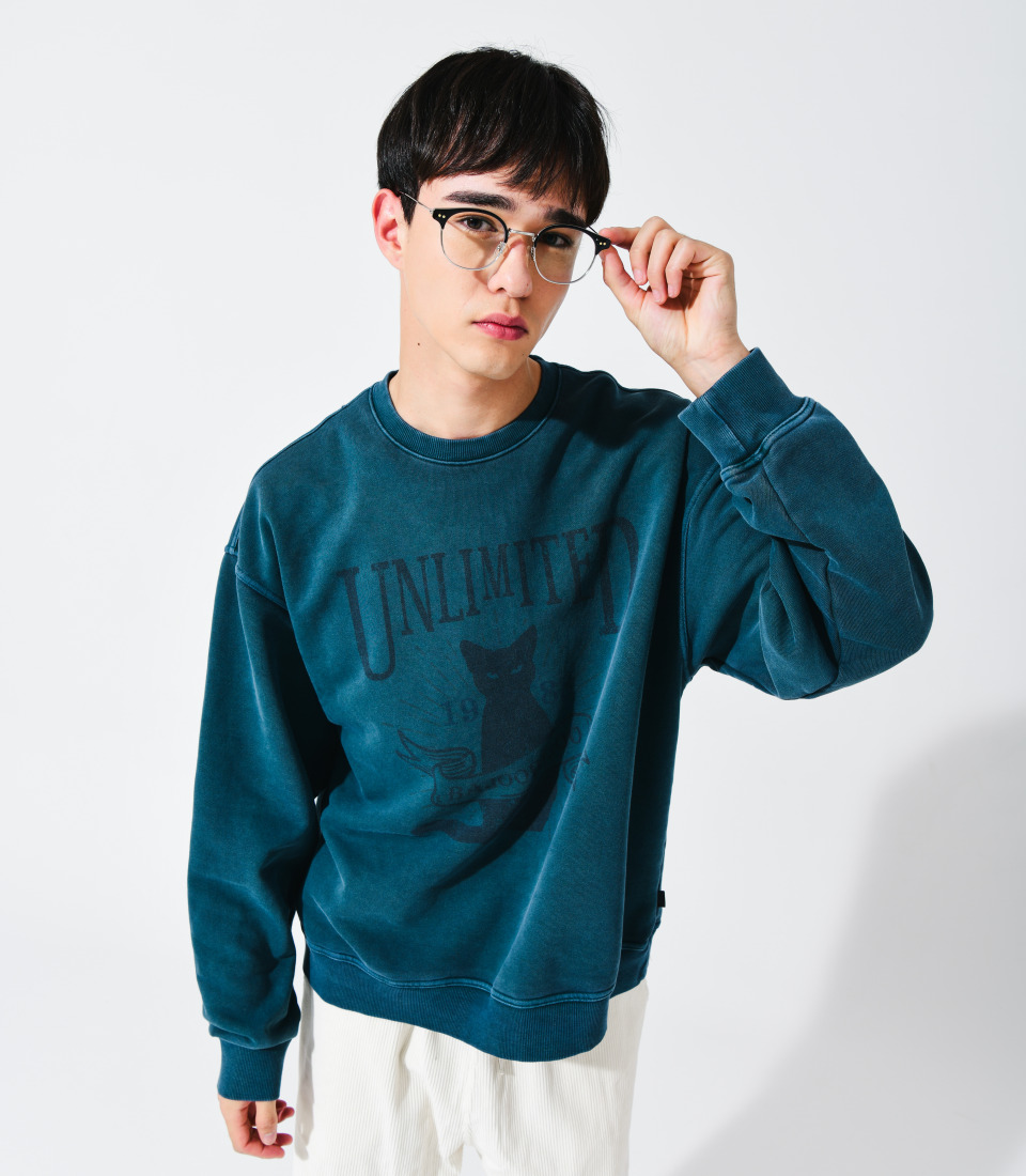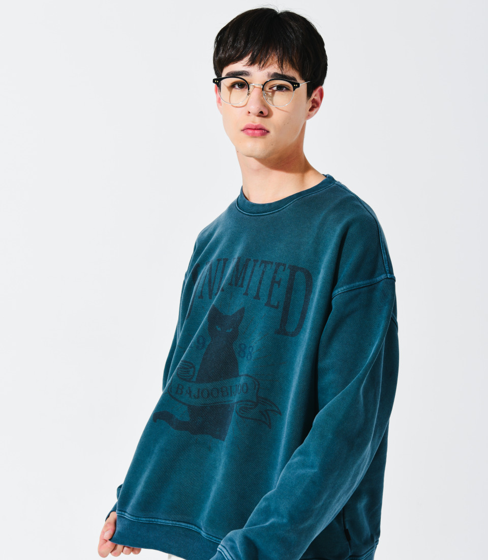 RIBBON CAT 레글런 피그먼트 맨투맨 스모크블랙