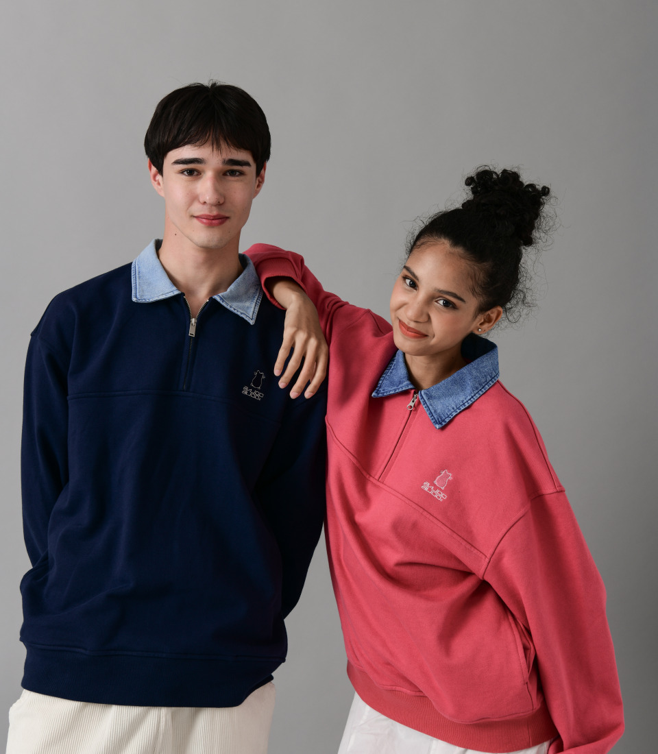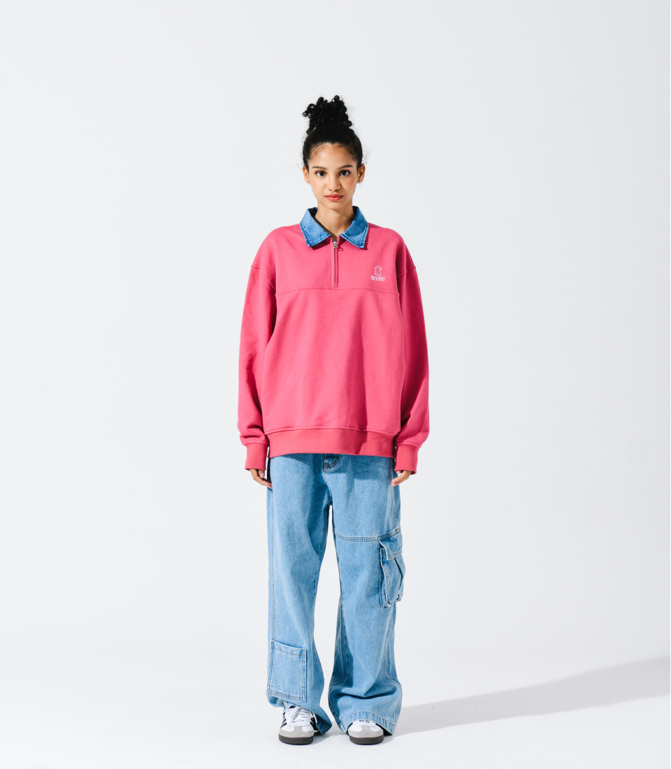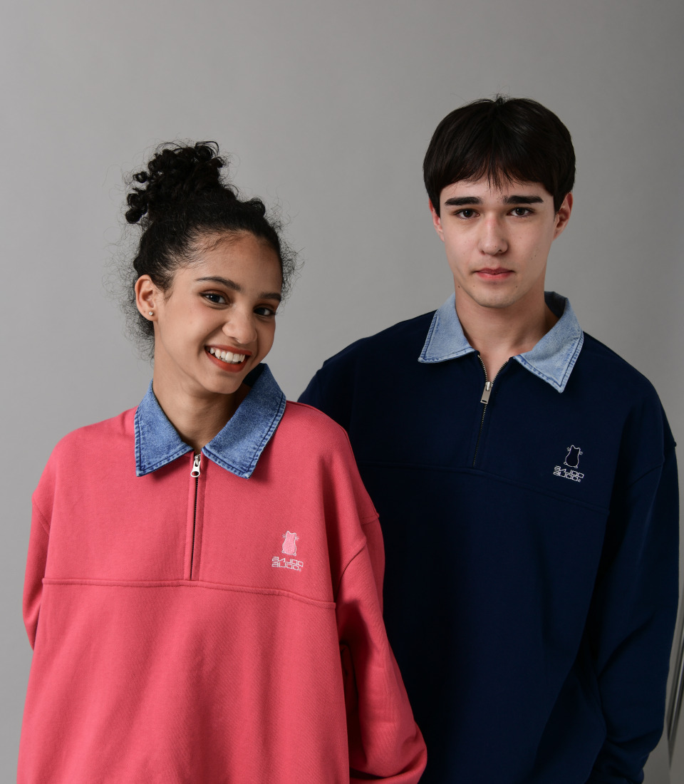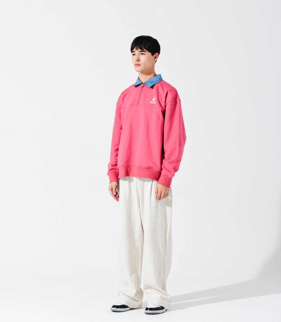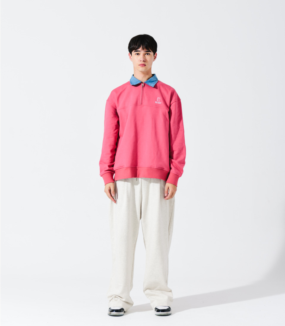 커먼즈 자수 로고 반집업 맨투맨_화이트메란지
