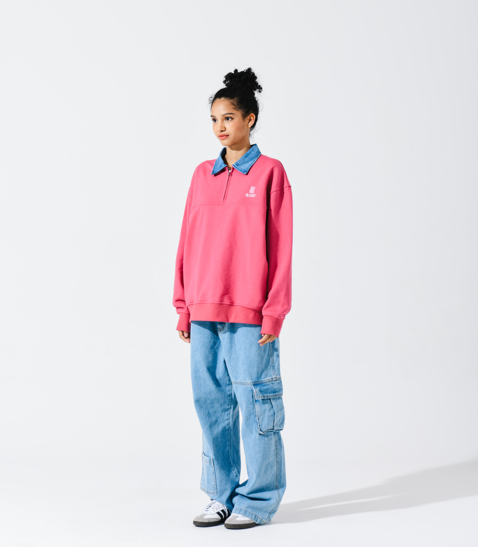UNISEX 로즈 엠보 블러 레귤러핏 맨투맨 크림(FCF1TS328M)