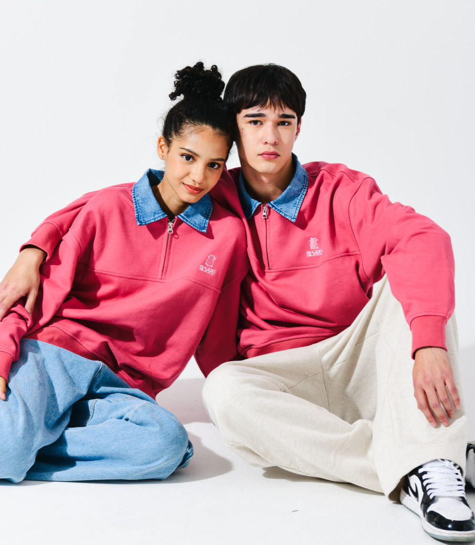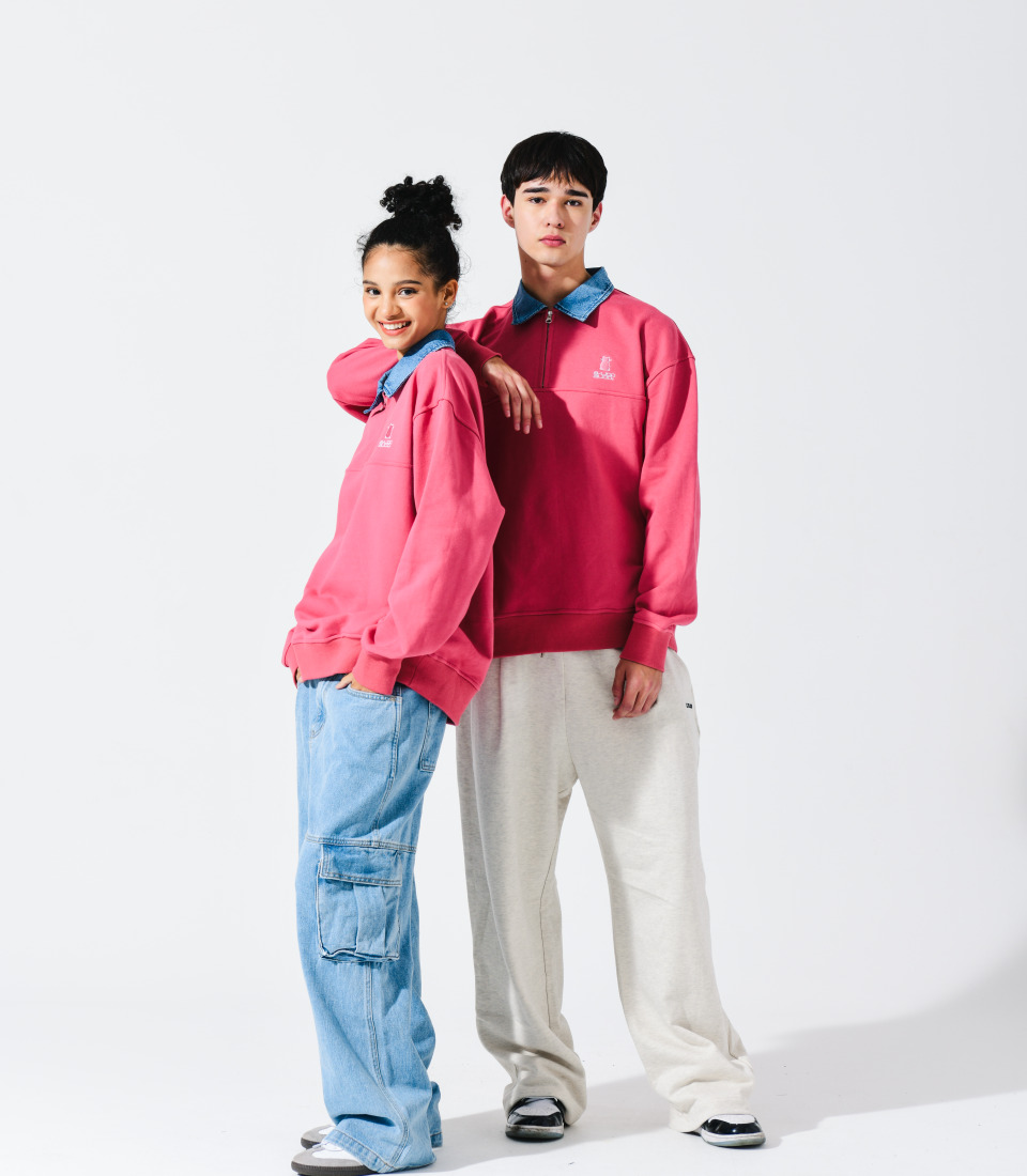 UNISEX 베어프렌즈 레귤러핏 맨투맨 핑크(FCF1TS322M)