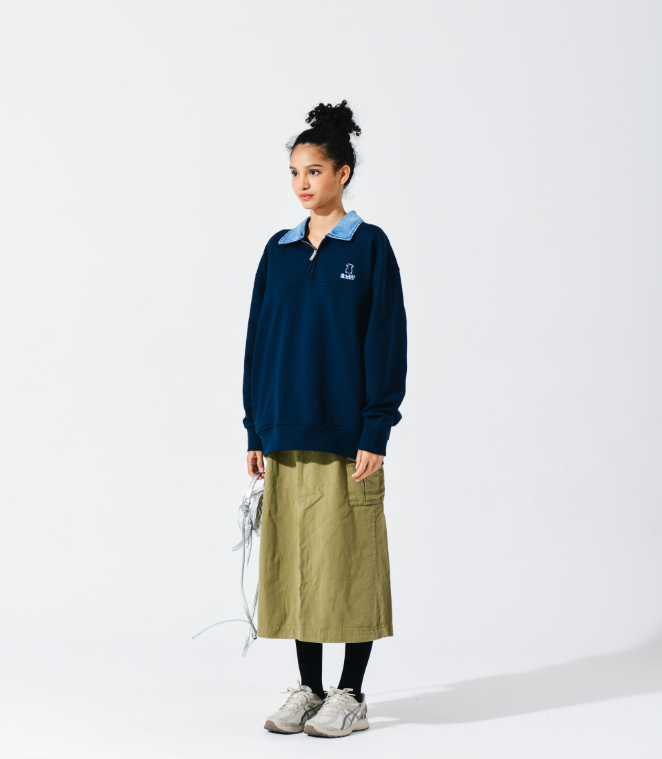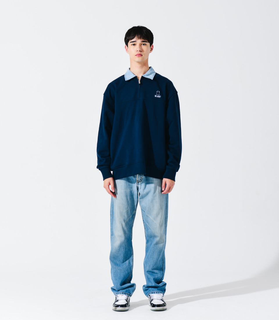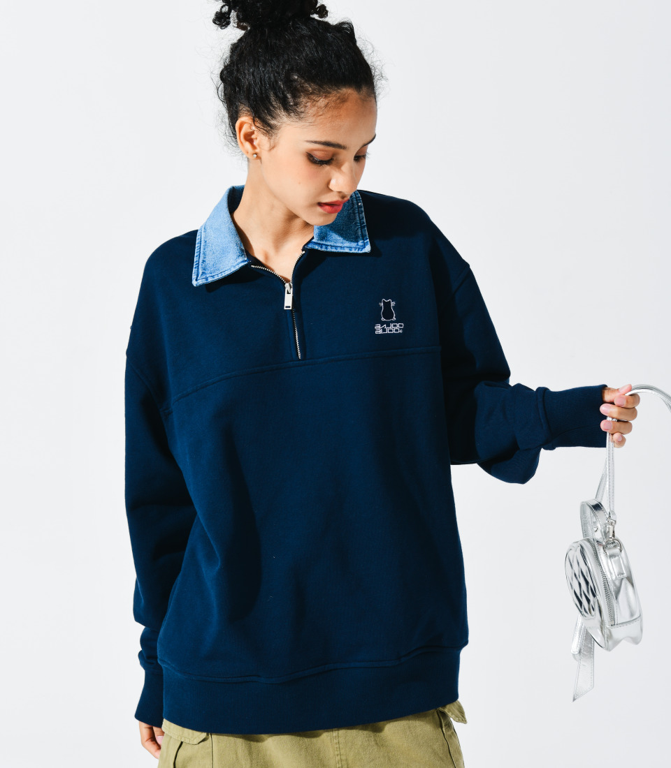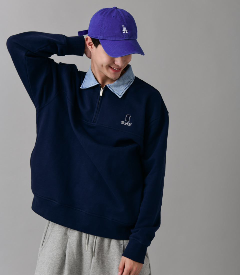 UNISEX 베어프렌즈 빅로고 레귤러핏 맨투맨 네이비(FCF1TS325M)