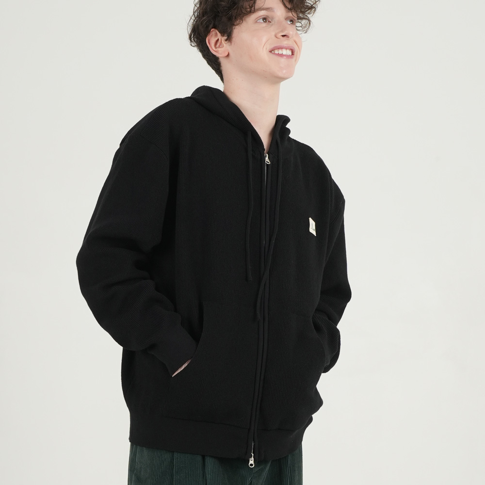 2-WAY 노르딕 윈터 후드 니트 집업 블랙