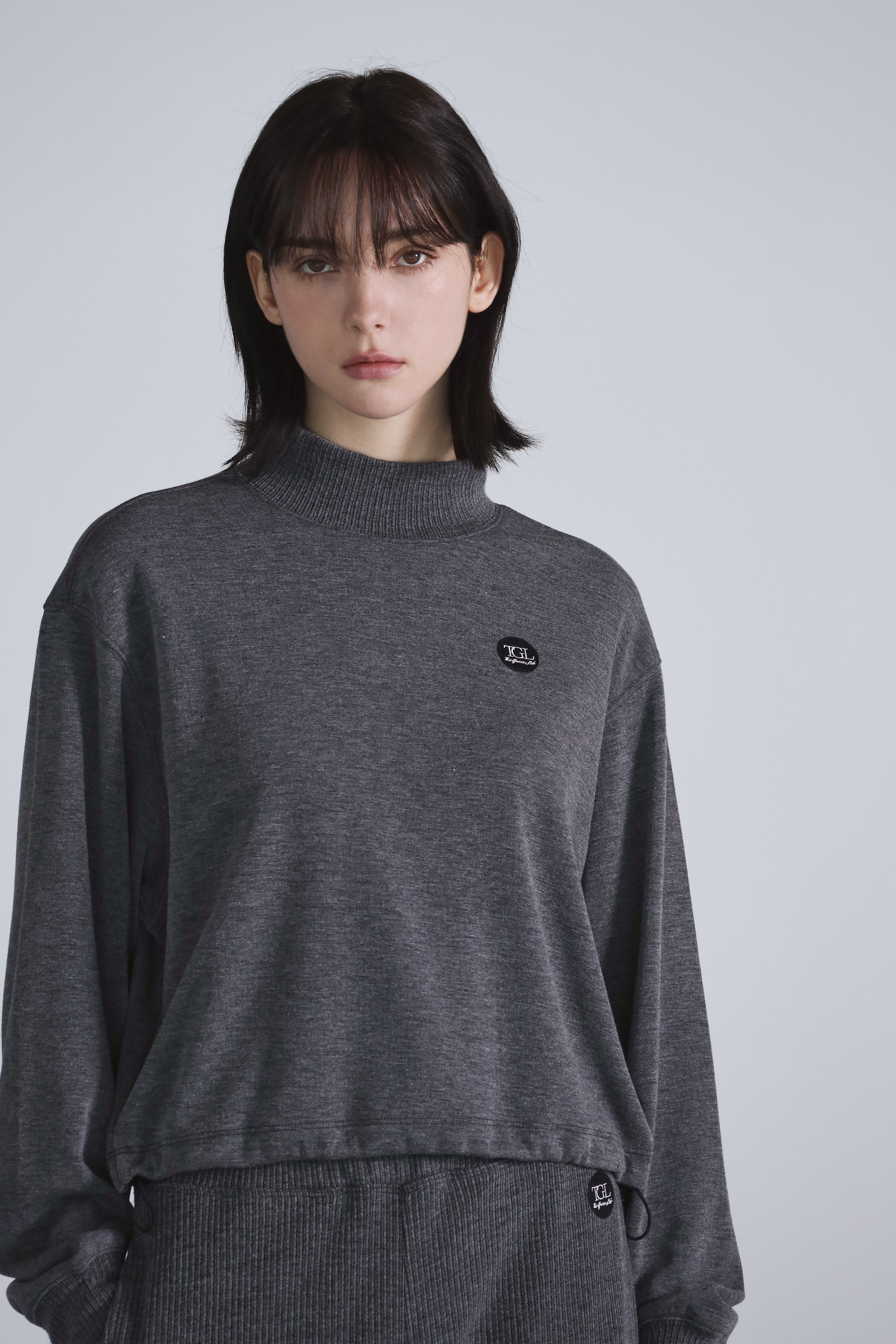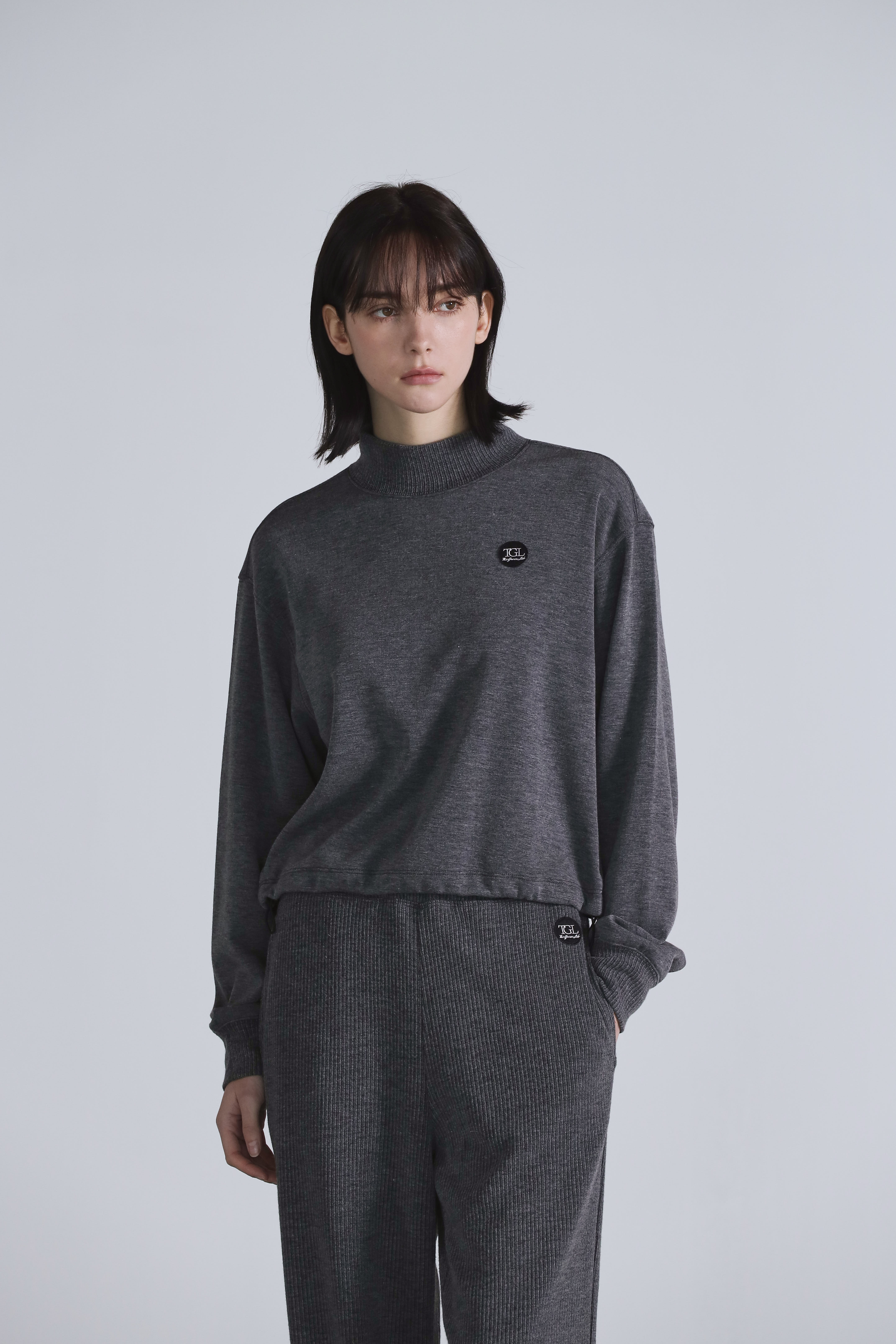 베이직 로고 카라 크롭 스웨트셔츠_애쉬그레이 여성용