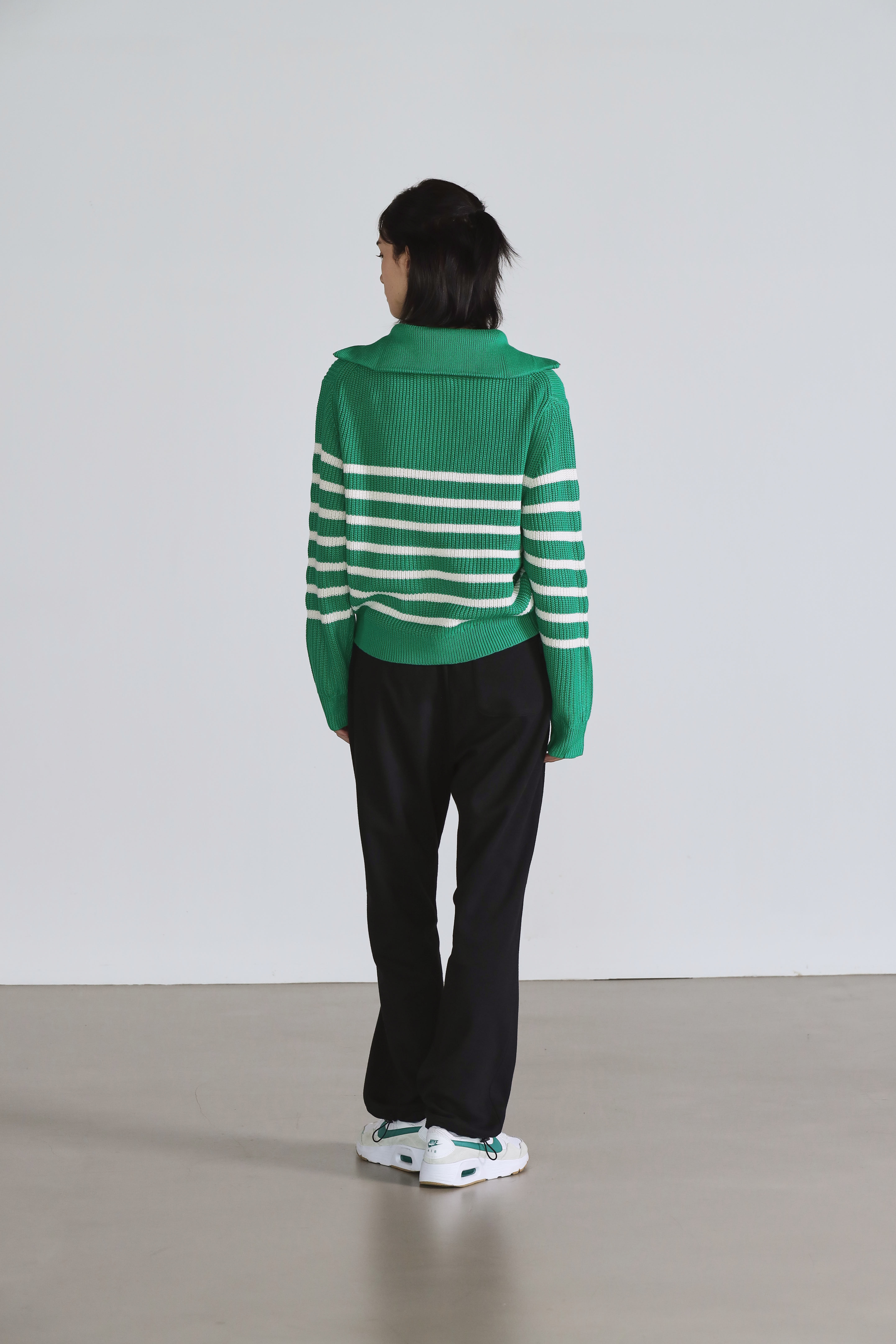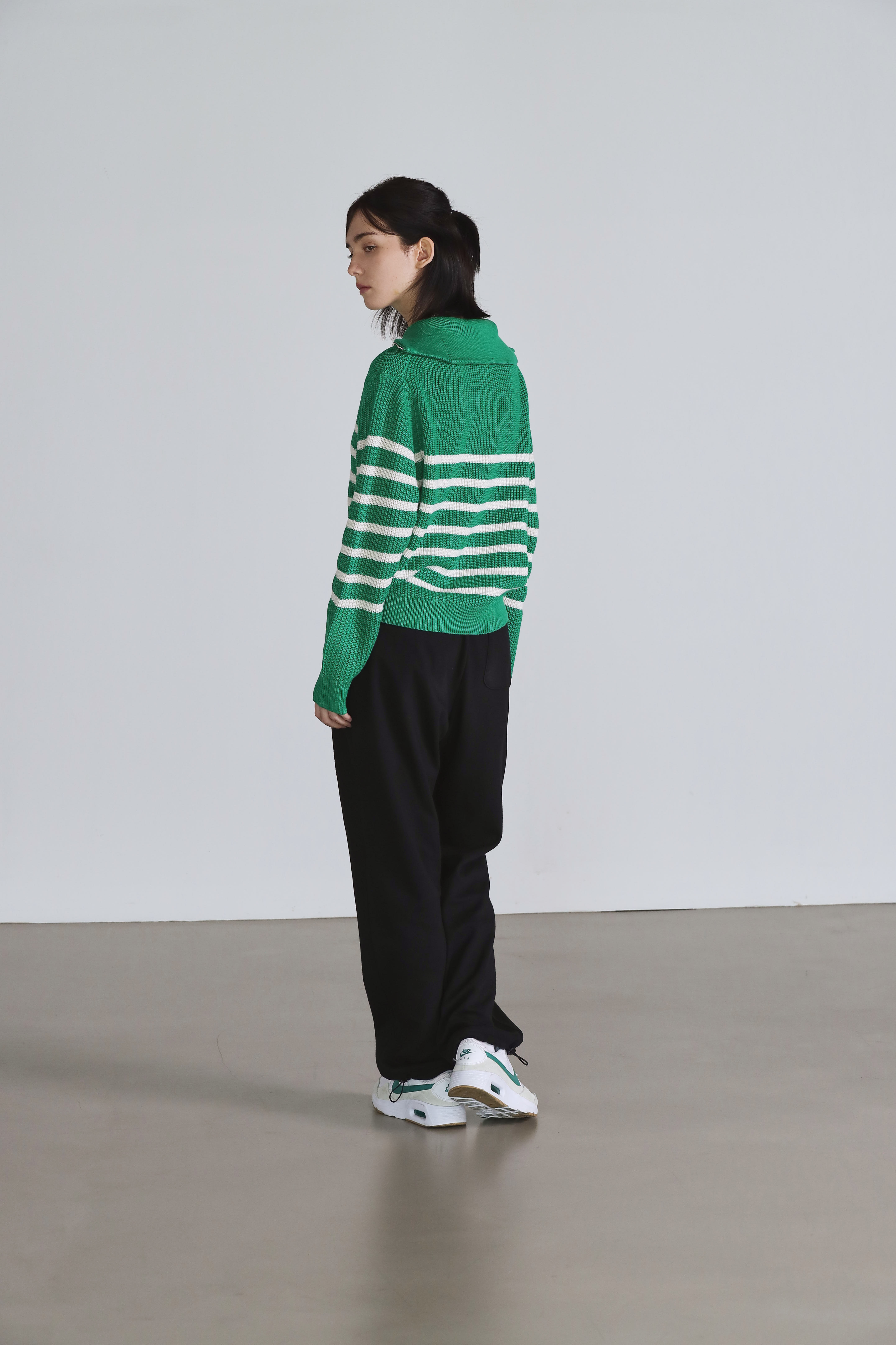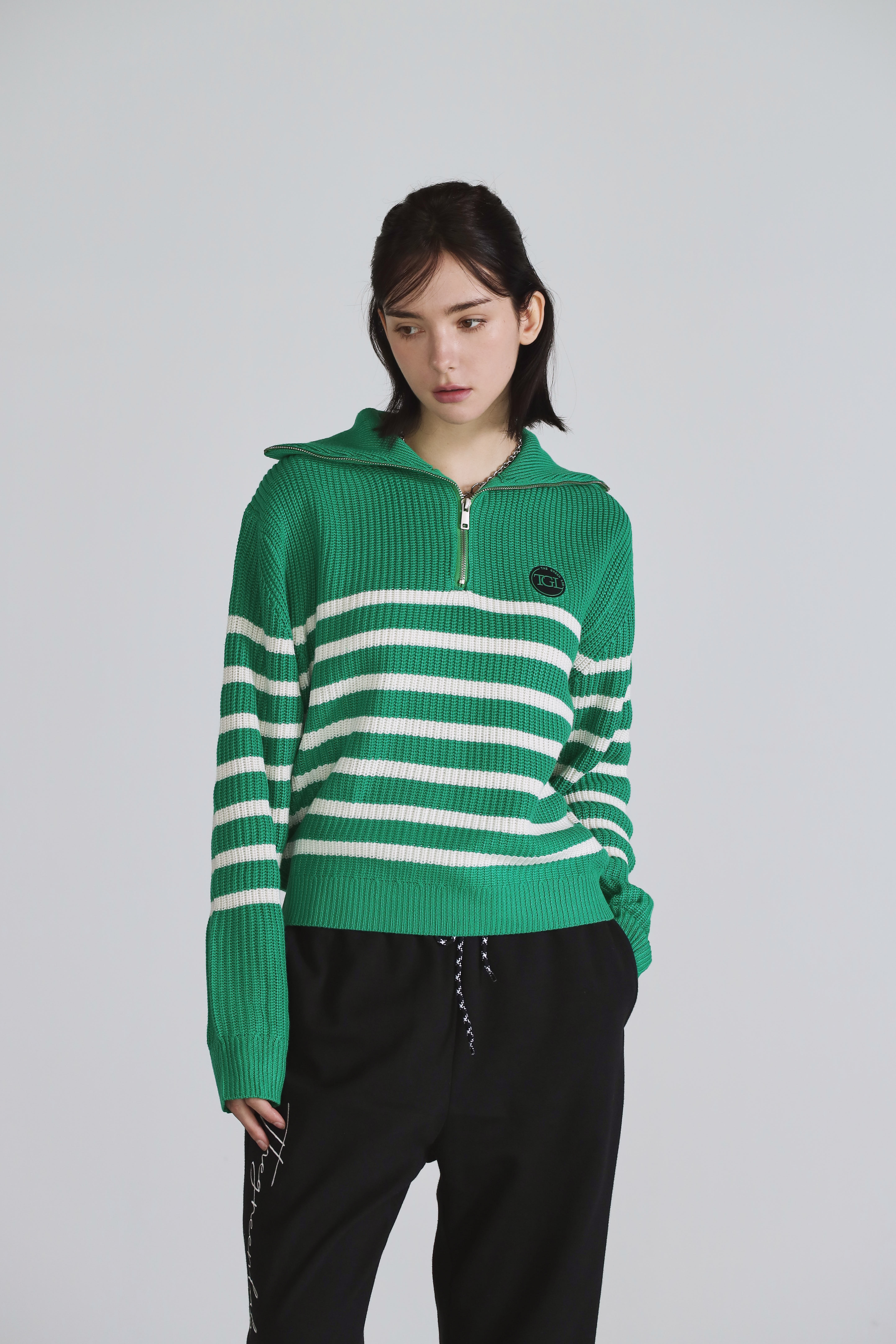스트라이프 와펜 니트 카키네이비
