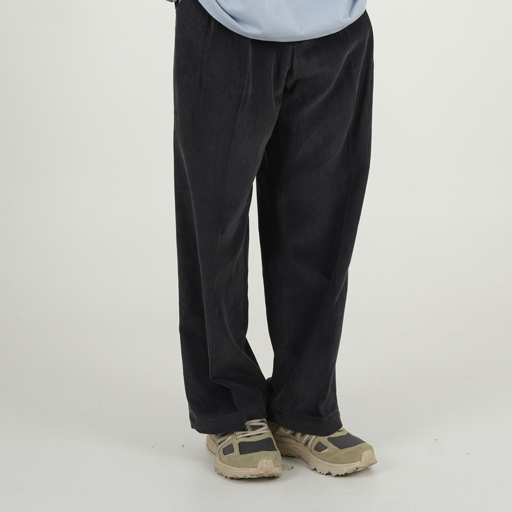 Fleece Bonding Corduroy Wide Pants ((Charcoal))