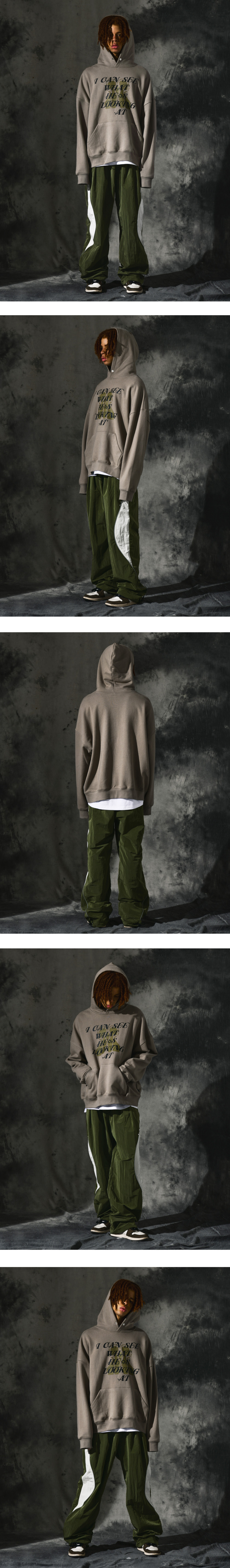 메쉬 원단,심플한 레터링의 와이드한 핏의 조거 팬츠