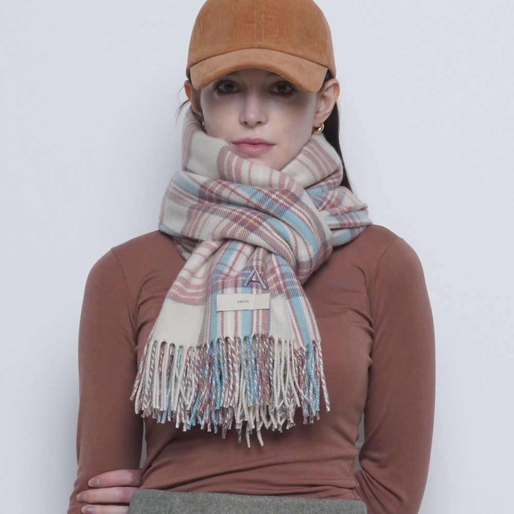 유니크한 스트라이프 디자인의 타이 니트 머플러