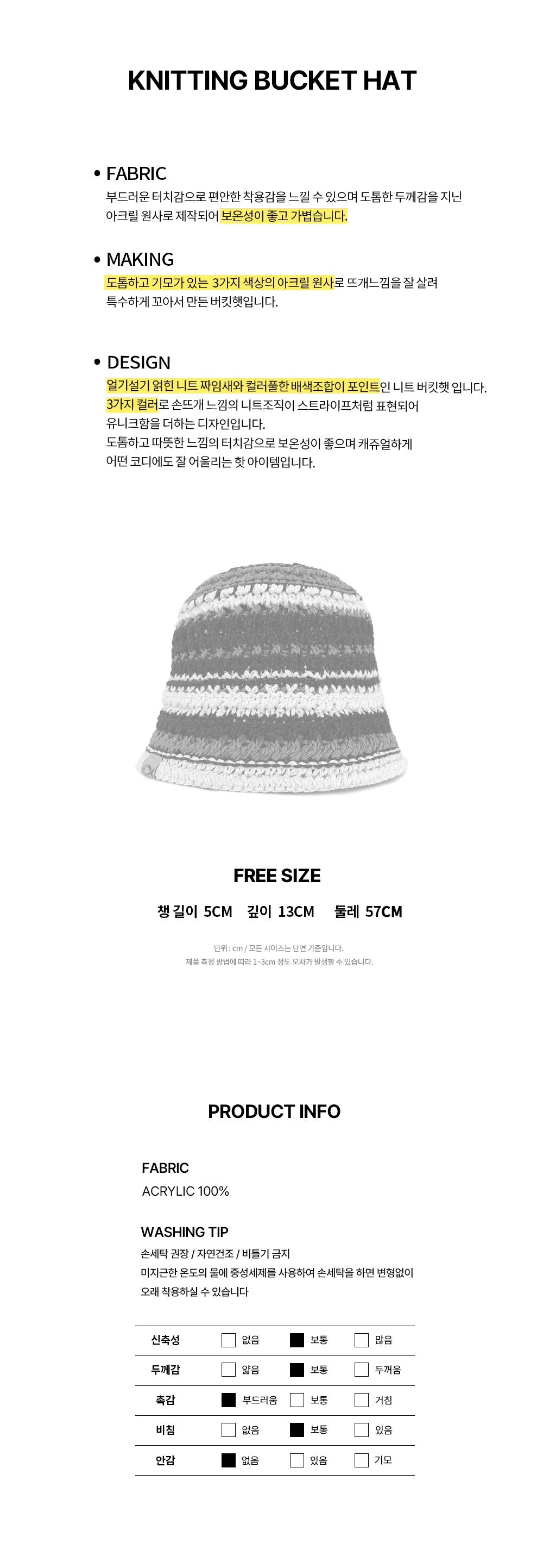 스트링 디테일로 안정감 있게 착용되는 니트 비치 버킷햇