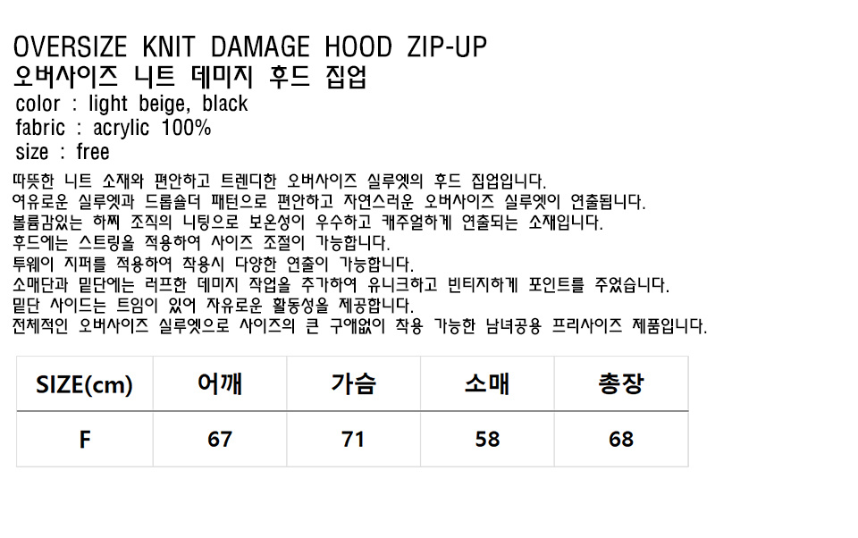 르커스텀 오버핏 무지 투웨이 후드집업 (라이트 멜란지)