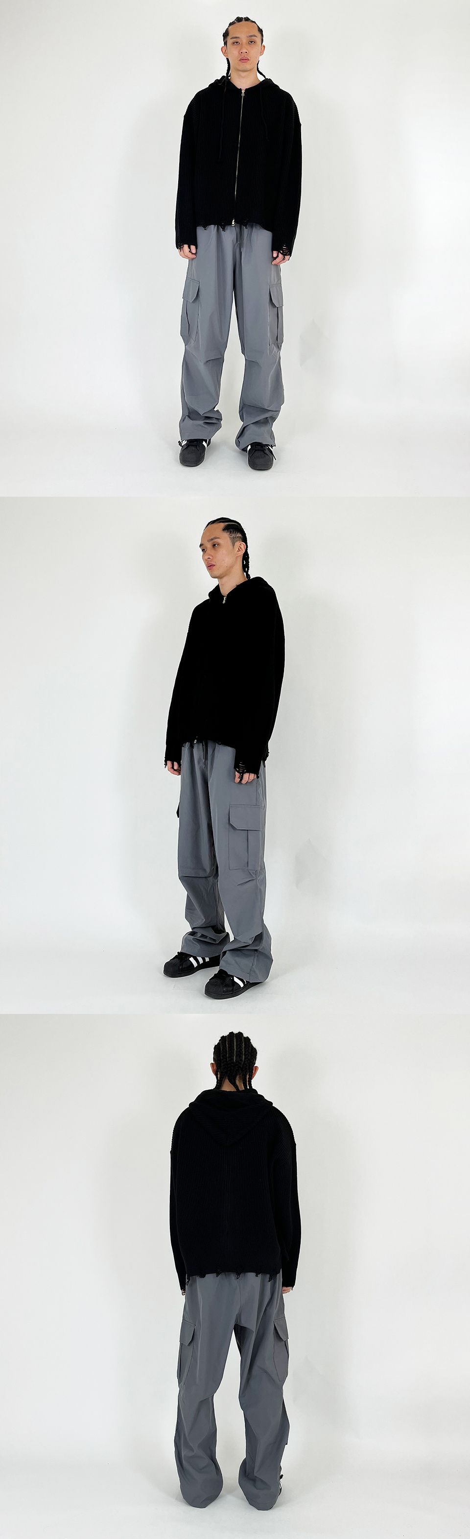 2-WAY 이어스탠드 피그먼트 후드 집업 스모크블랙