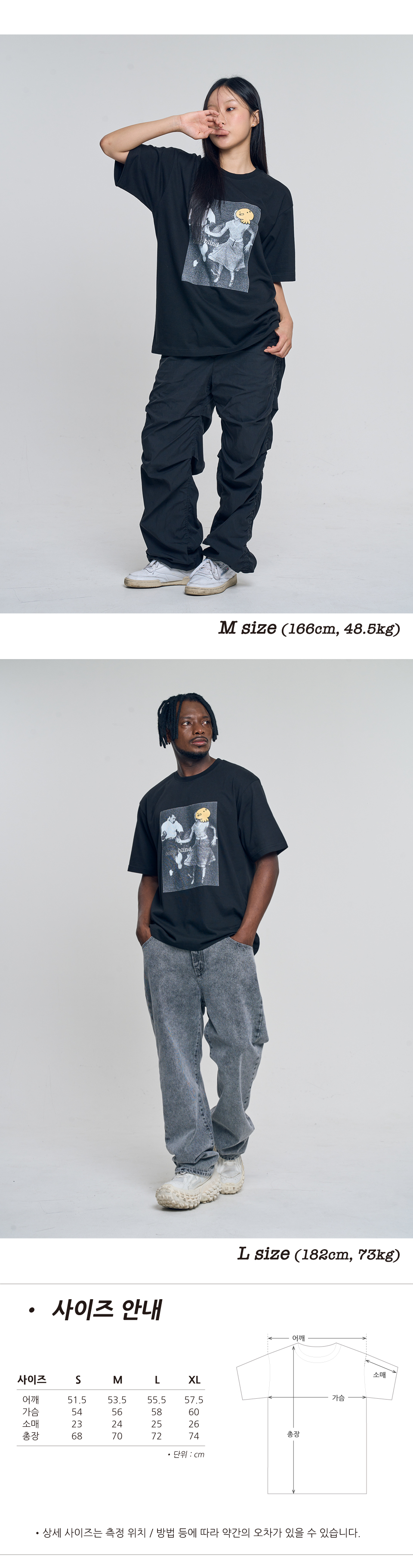 가벼운 소재로 그래픽이 특징인 스트릿 캐쥬얼 반팔티셔츠