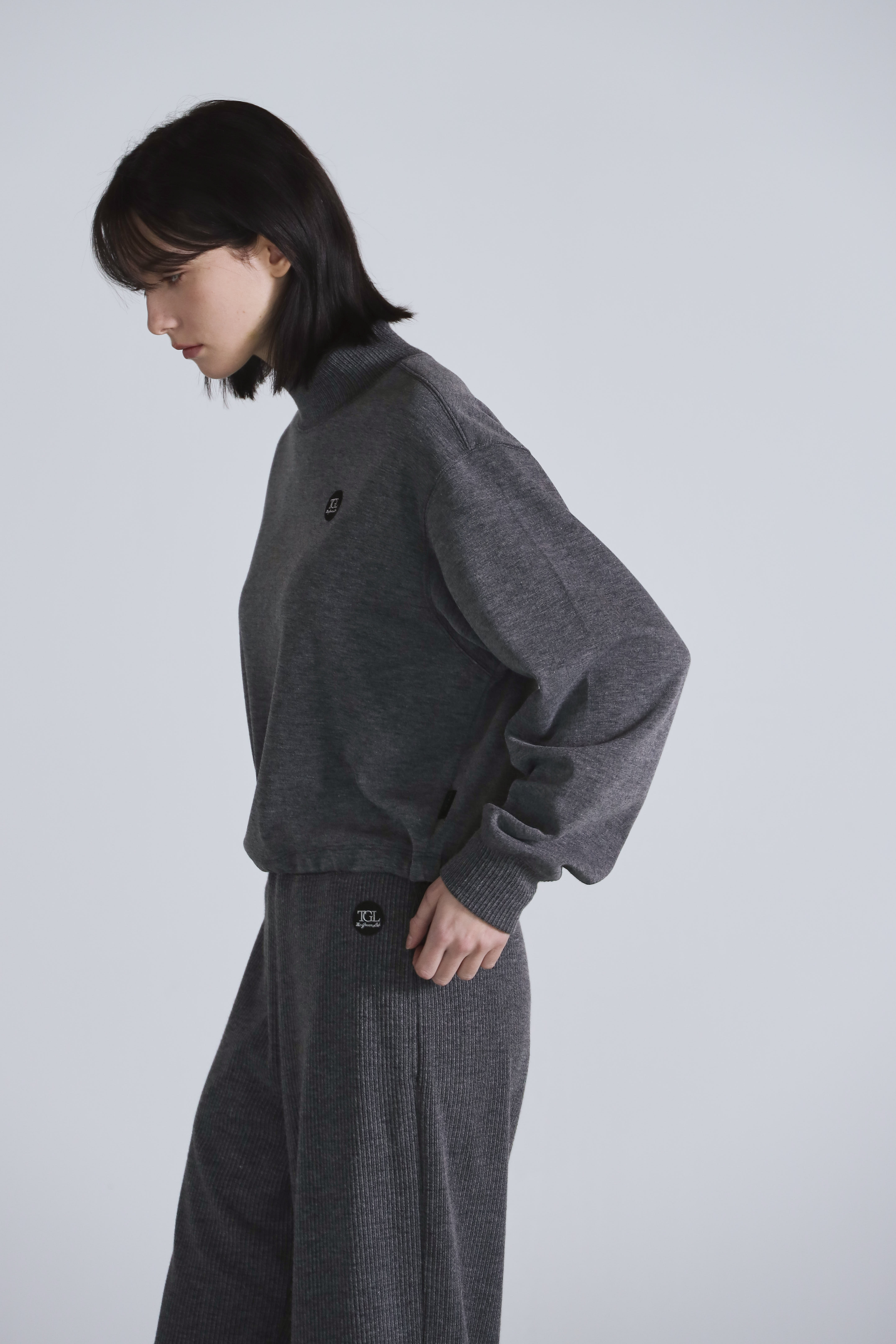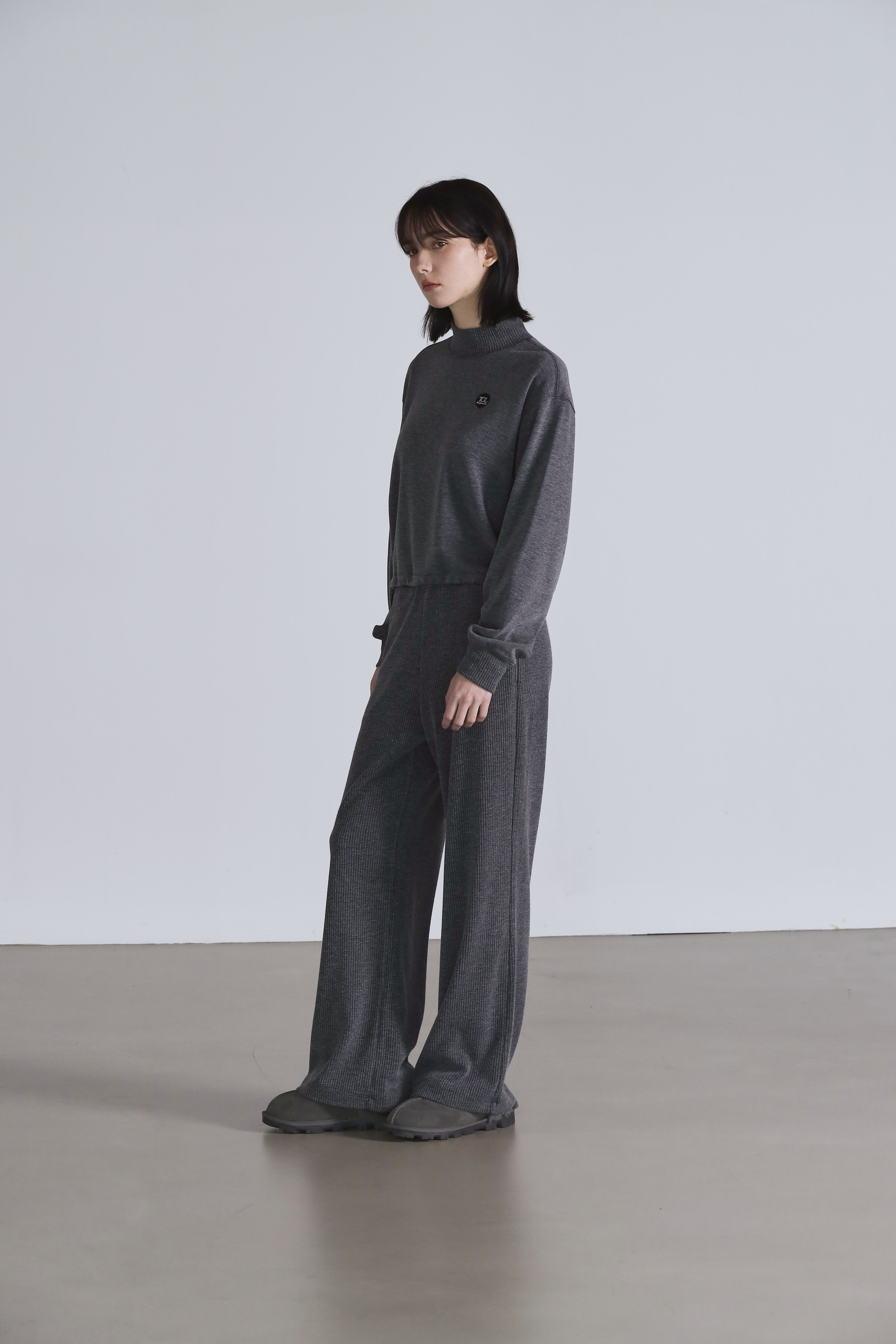Pigment Double Napping Sweat Wide Pants ((charcoal))