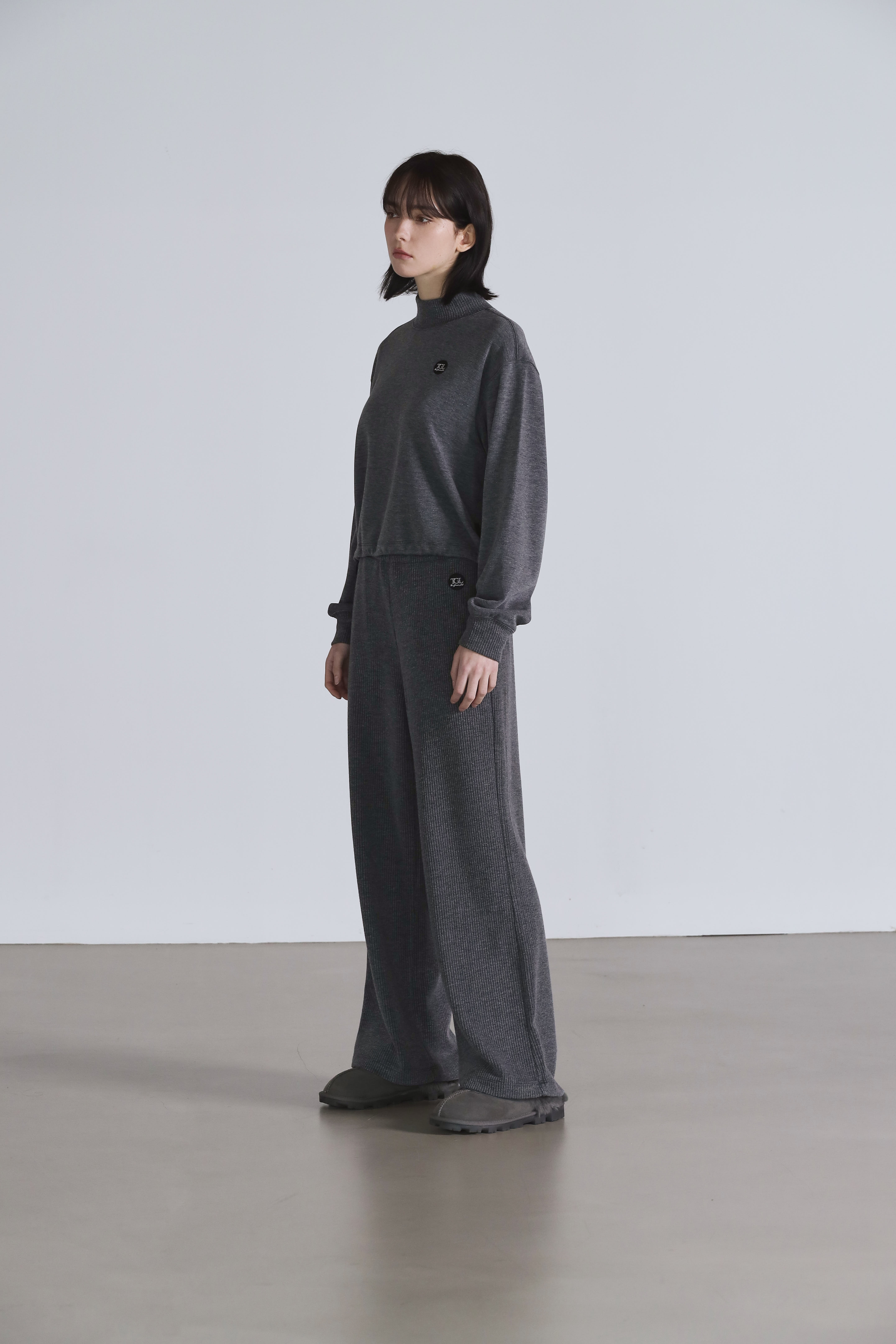 원턱 와이드 스웻팬츠_그레이