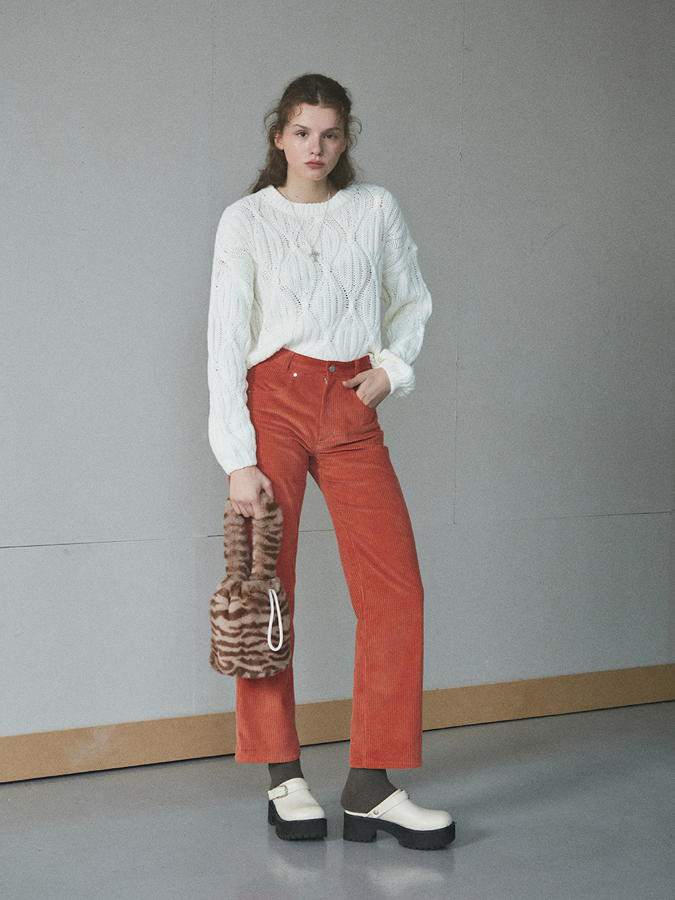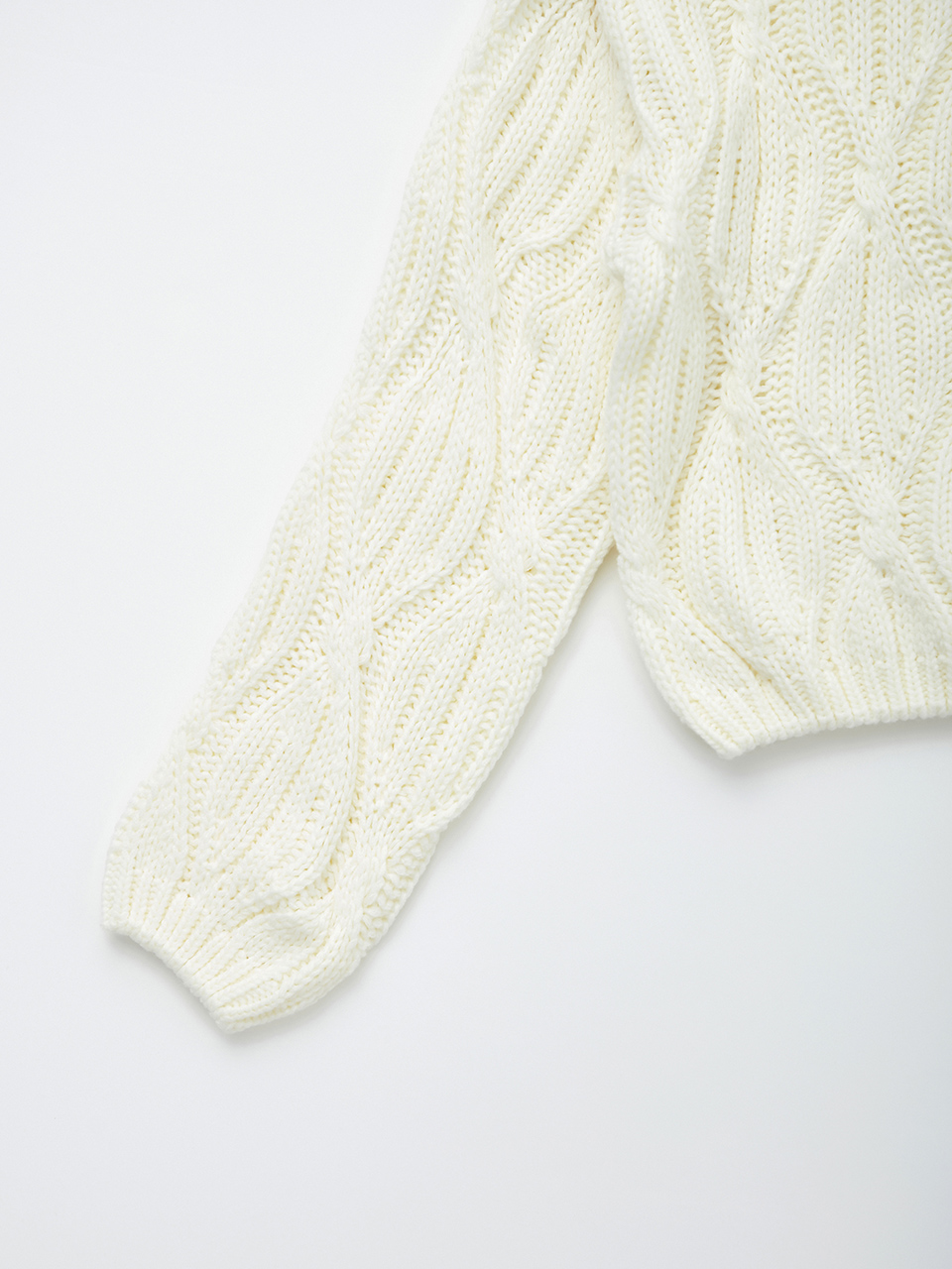 캔디 모양의 꽈배기 조직이 스타일 지수를 높여주는 크롭기장의 니트입니다. 데일리에 활용하기 좋은 아이보리&베이지 컬러로 가을을 물들여보세요. 부드러운 터치감과 보온력도 놓치지 않았습니다.