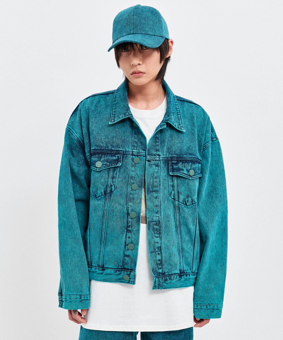 KAEISS FOLD WING COATING DENIM JACKET - SKY BLUE