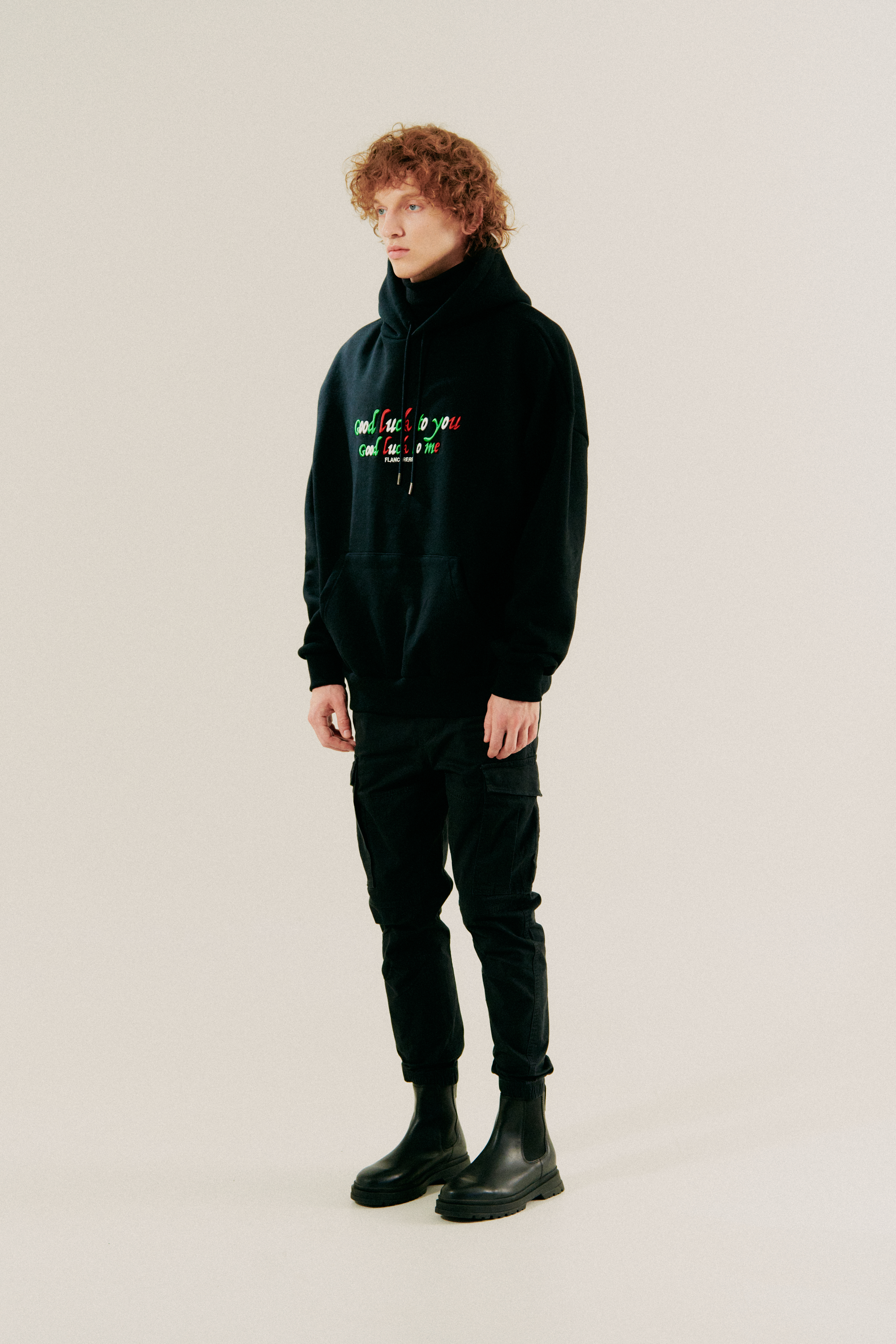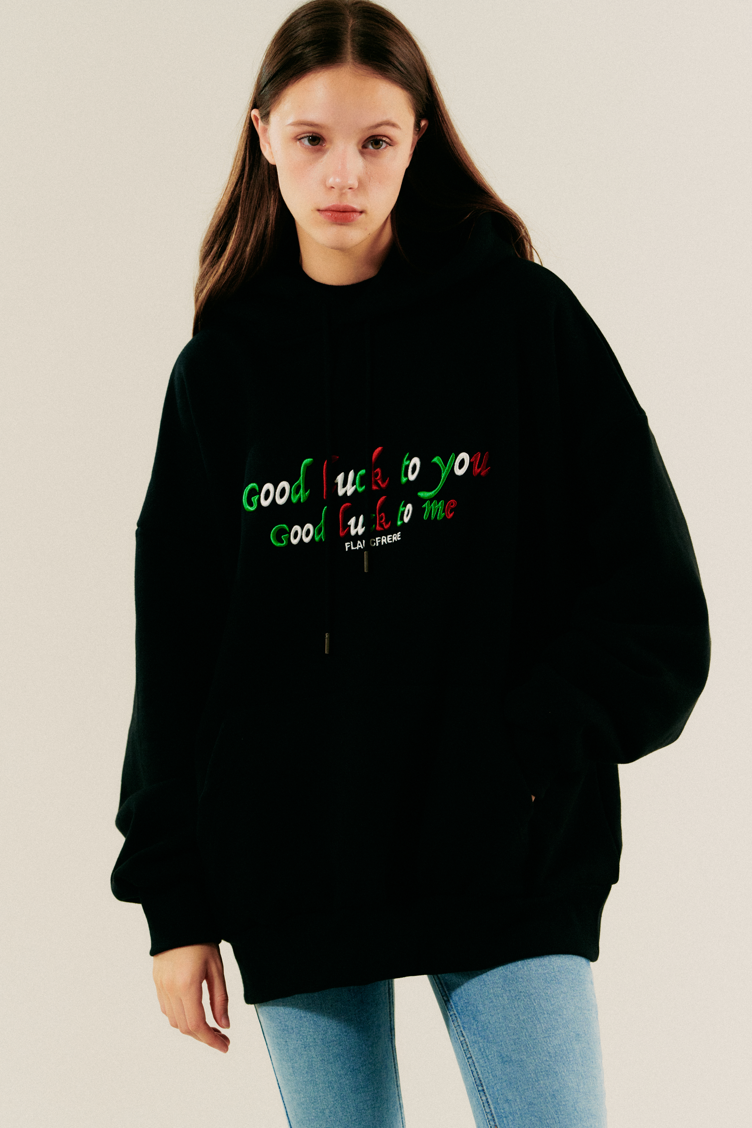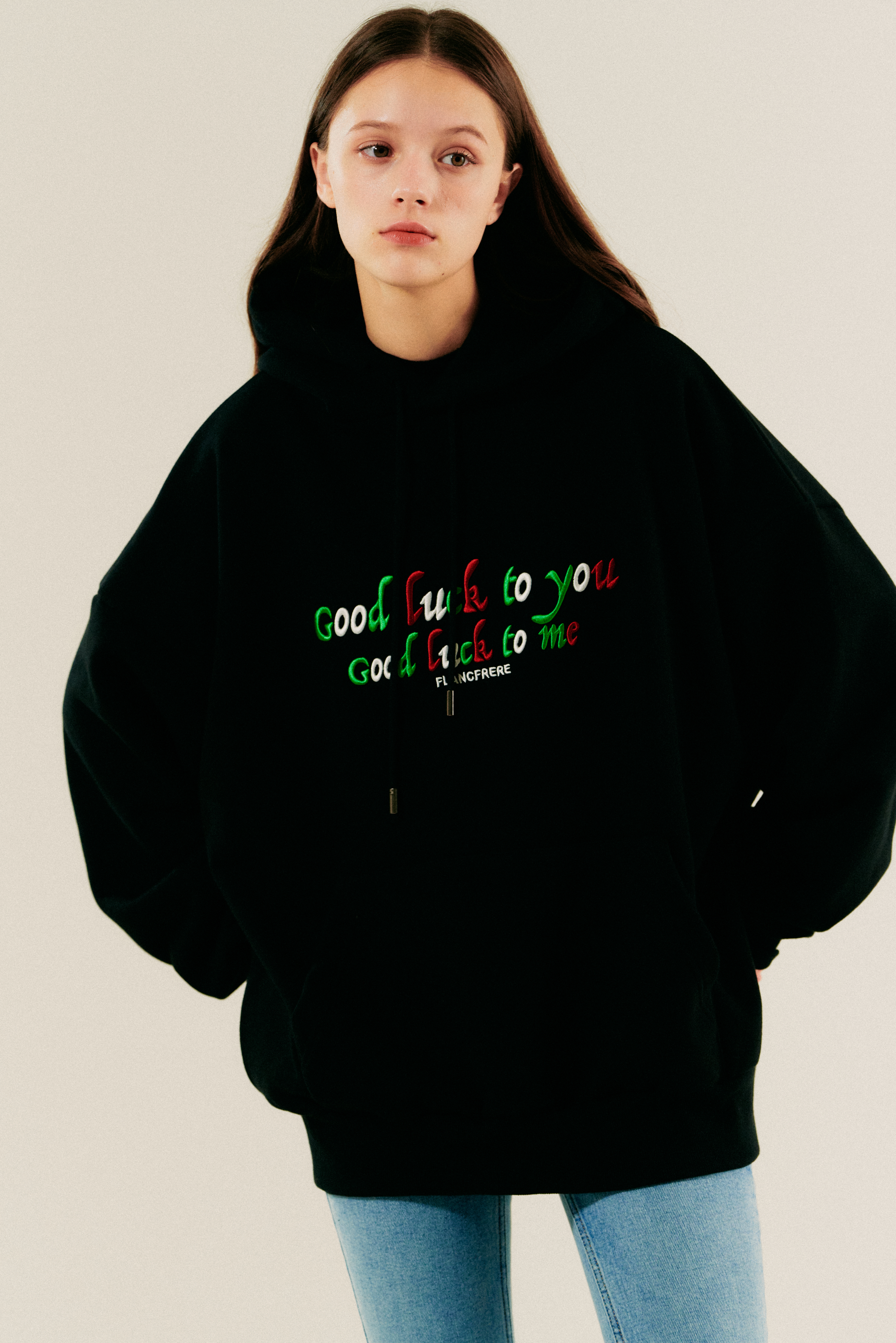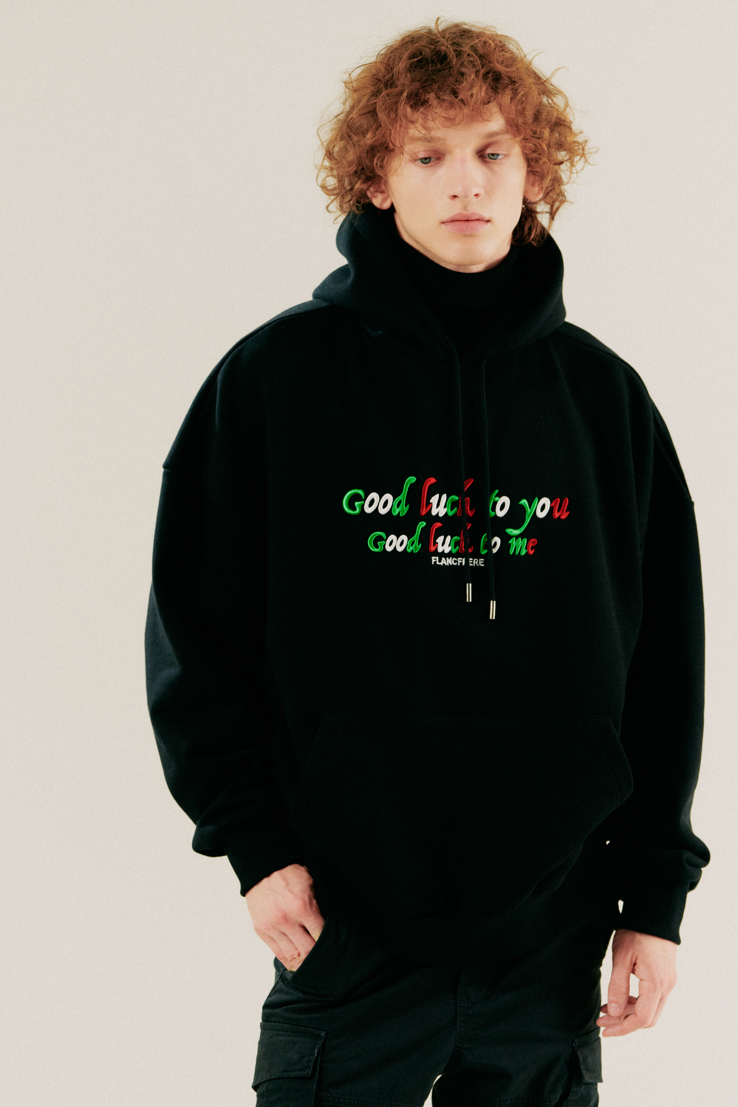 오버핏 후드 배색 엠보자수 후드 블랙(FCF3TS645M)
