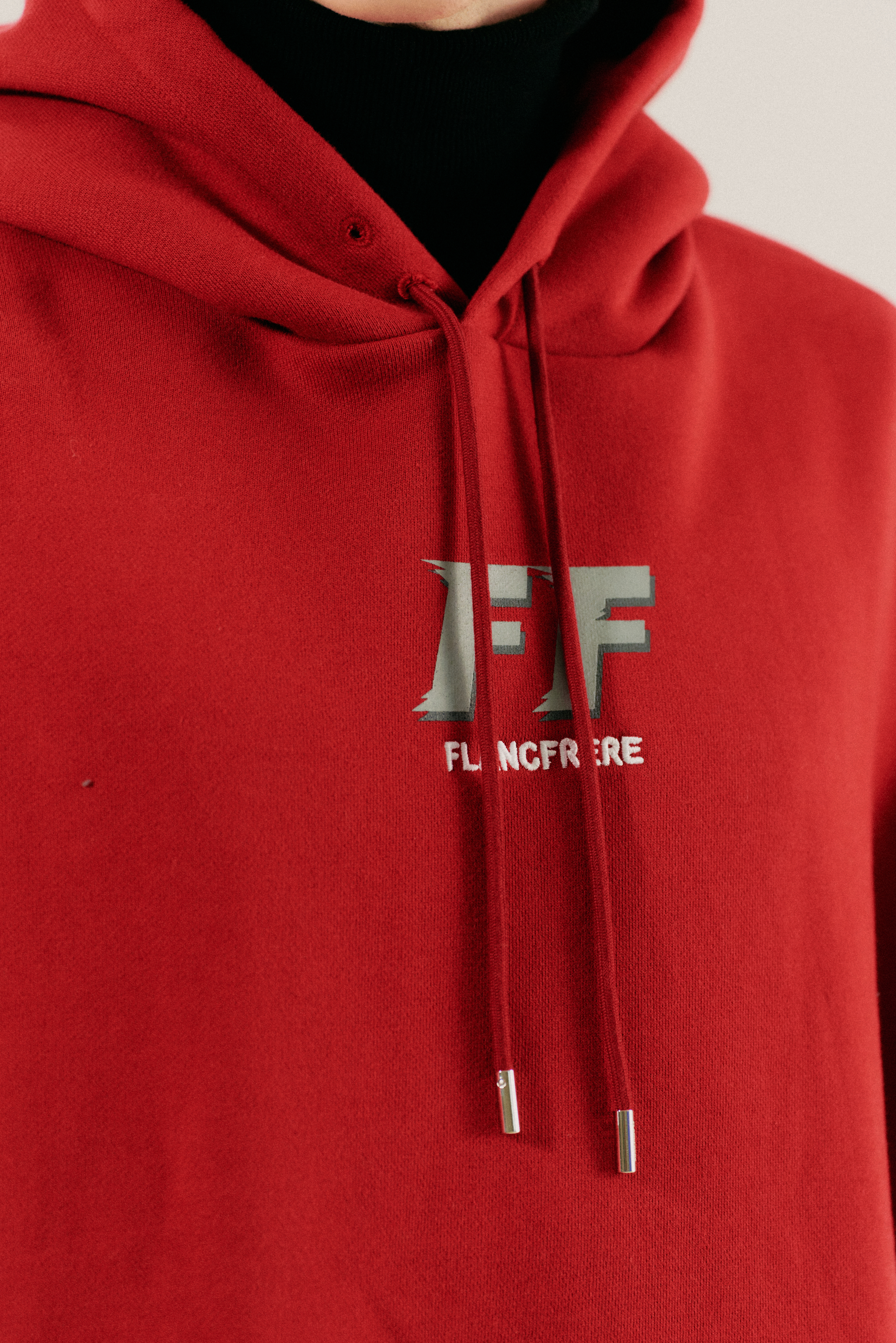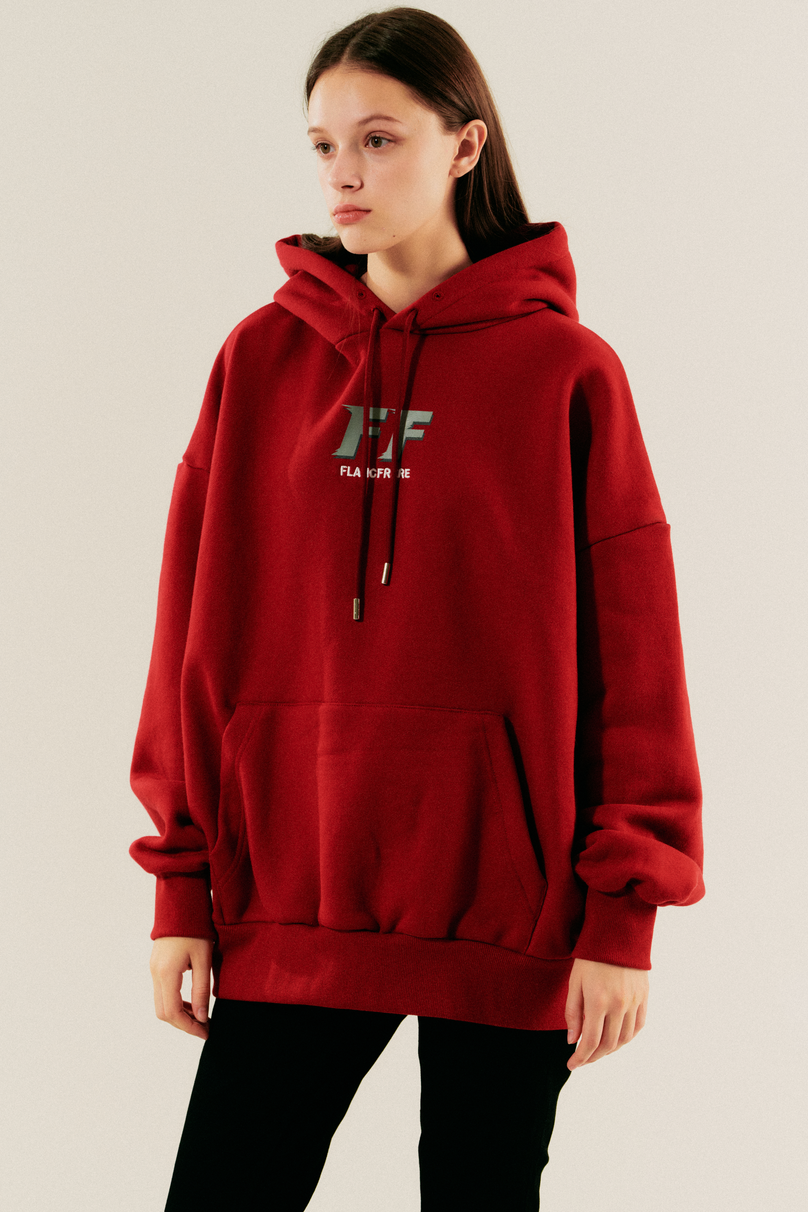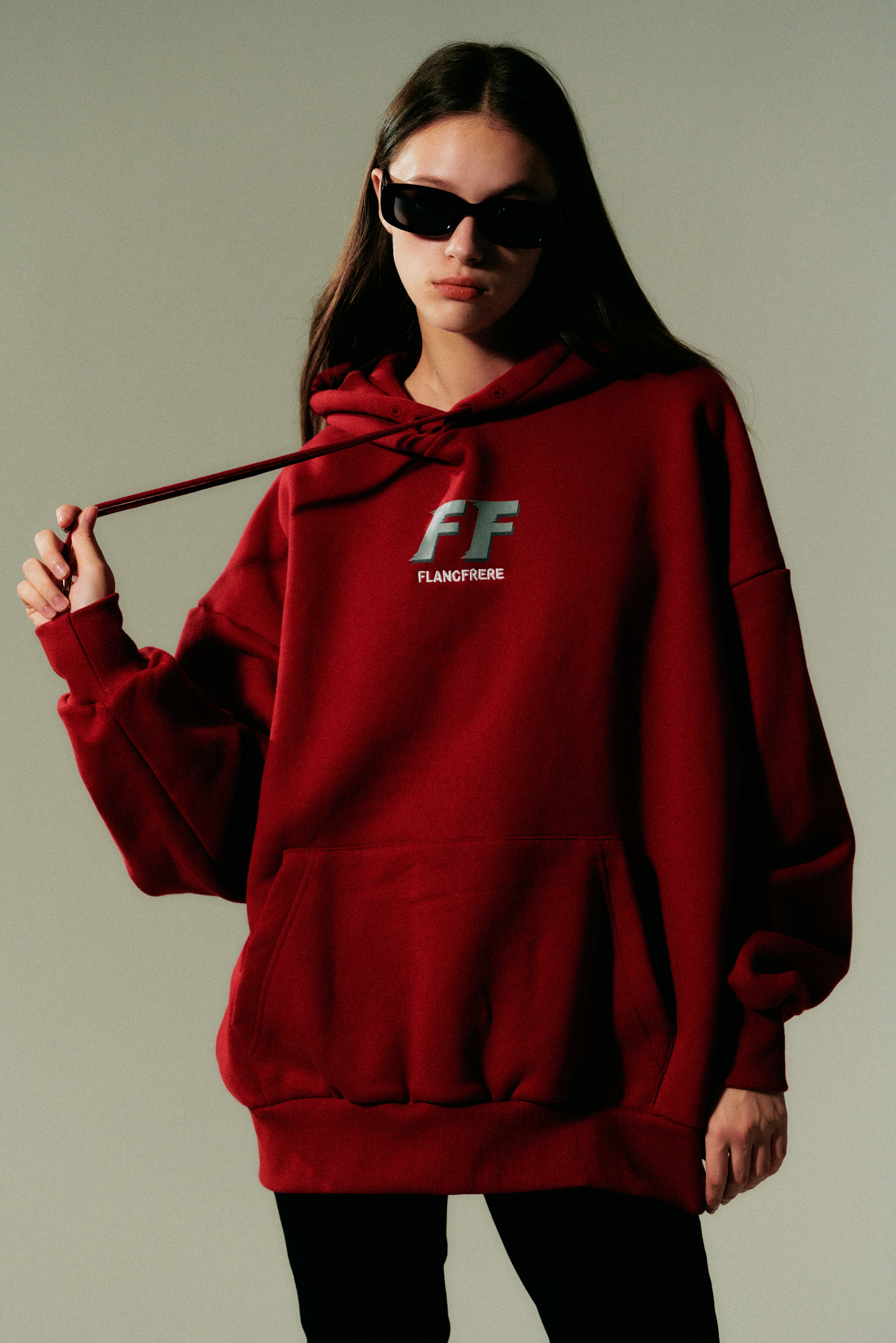오버핏 후드 배색 엠보자수 후드 버건디(FCF3TS645M)