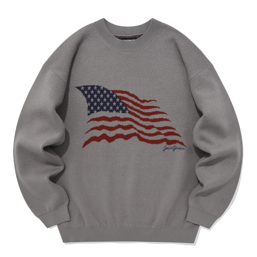 Two-tone Winter Stars Round Neck Sweater_BLACK