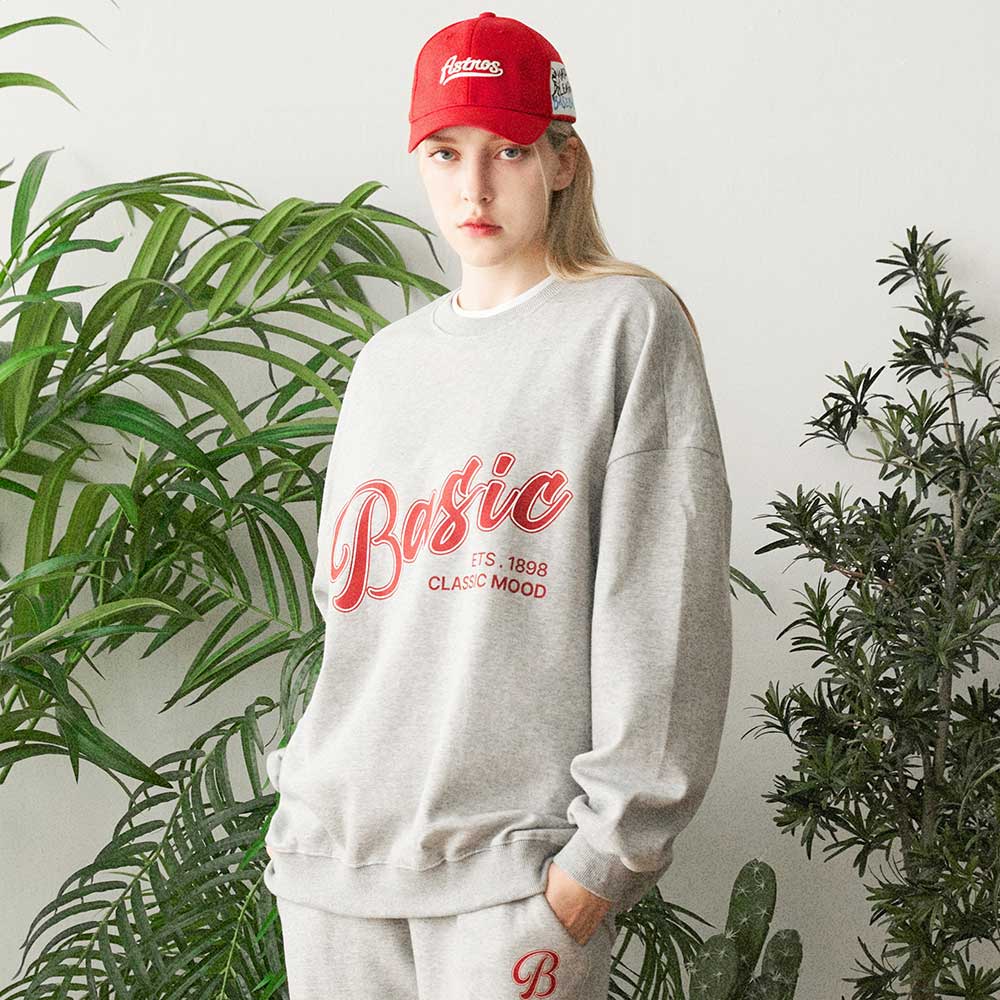 oml 아플리케 패치 스웻 셔츠 (멜란지 그레이)