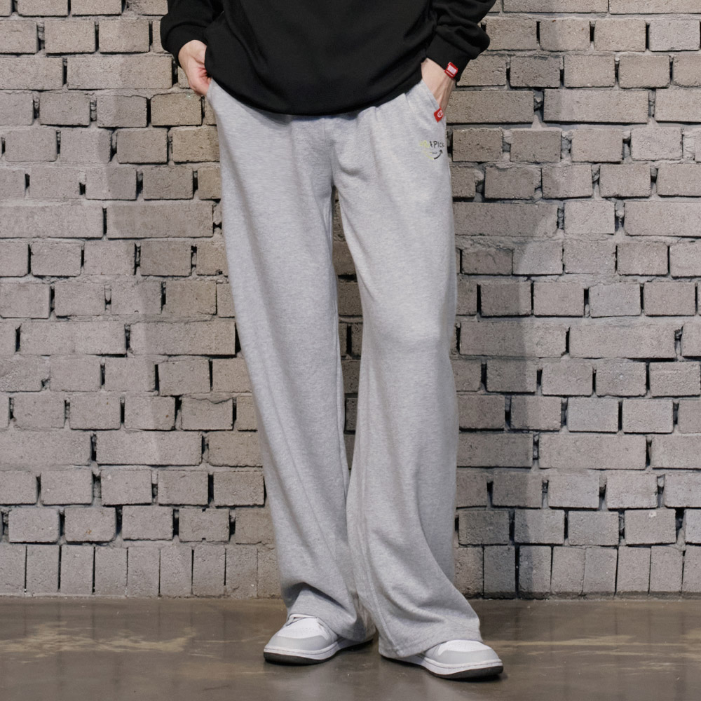 메쉬 원단,심플한 레터링의 와이드한 핏의 조거 팬츠