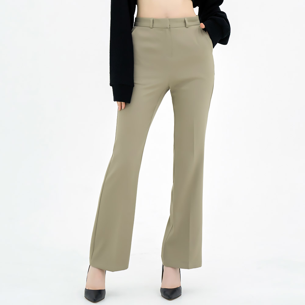 스트레이트 핏 팬츠에 랩스커트를 더한 레이어드 디자인