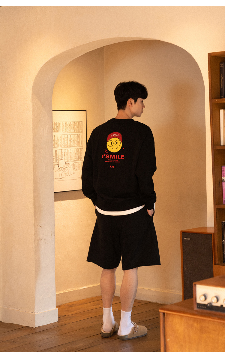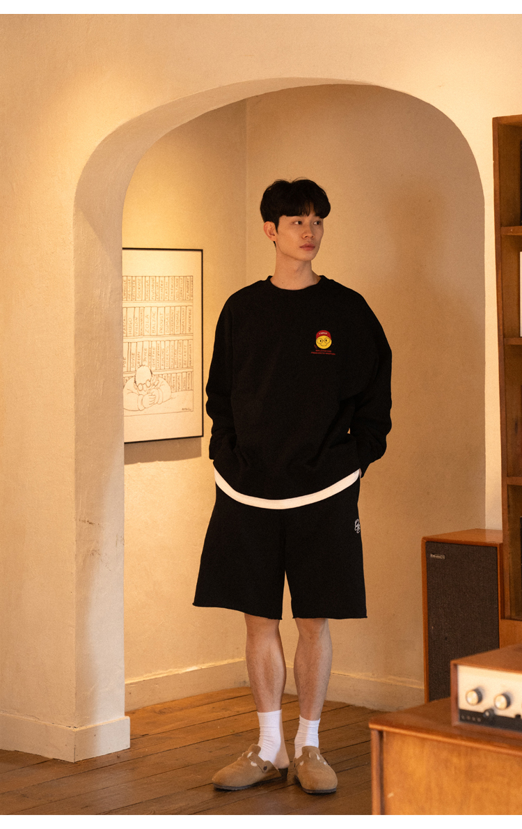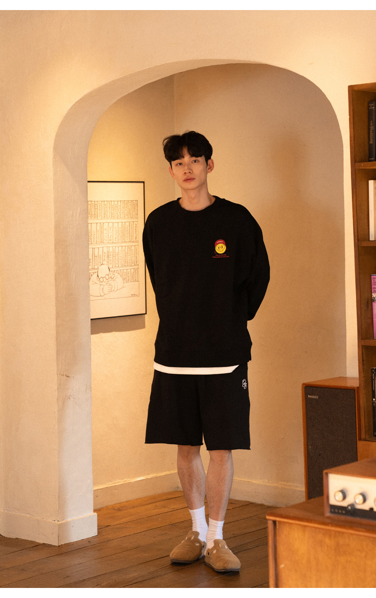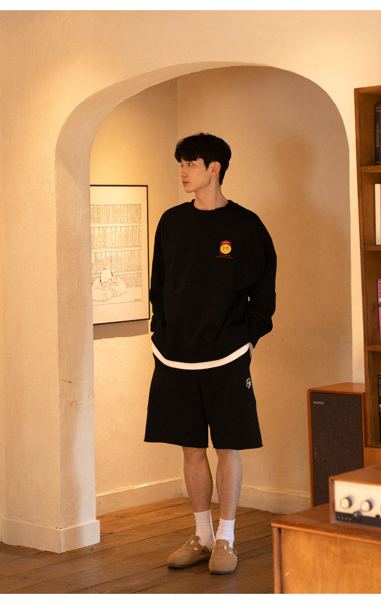 해피캘리 레글런 피그먼트 맨투맨 스모크블랙
