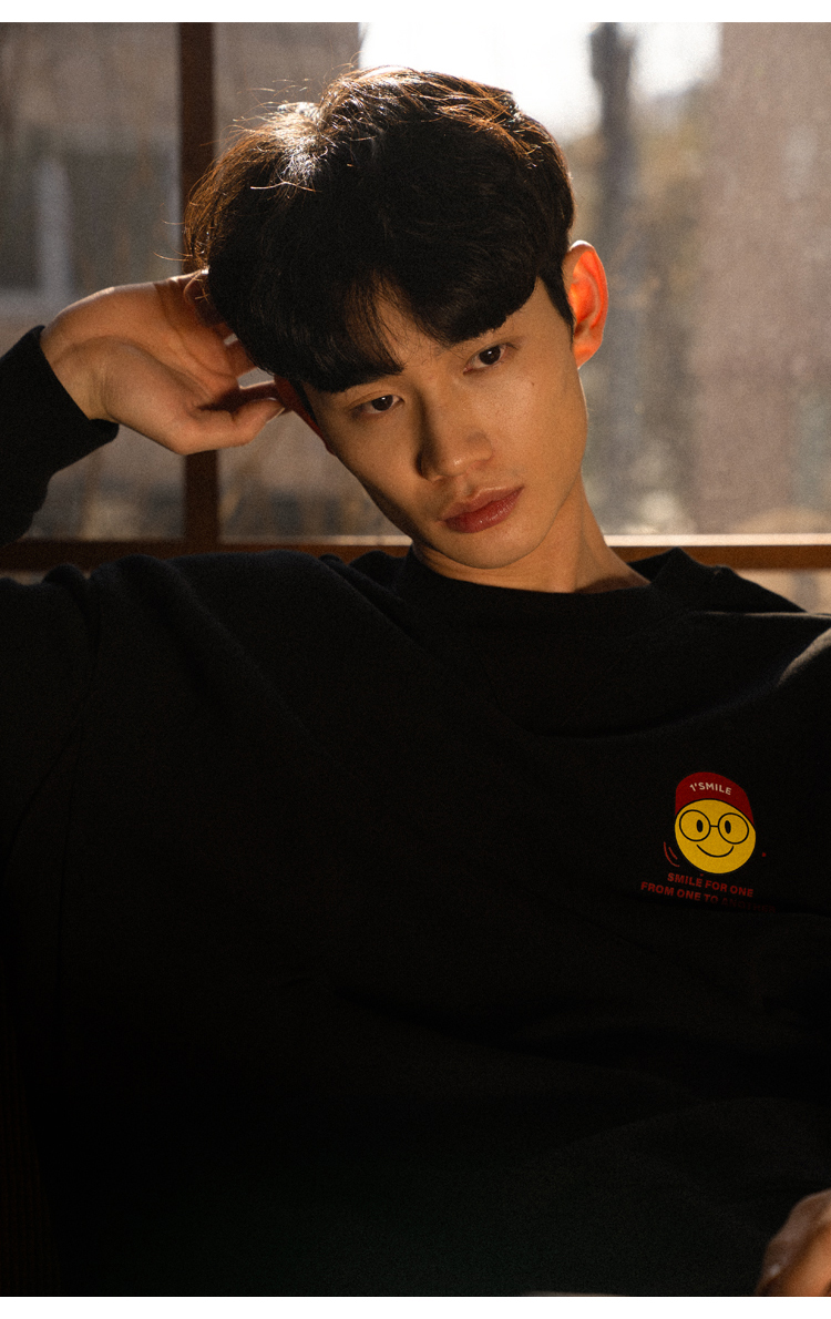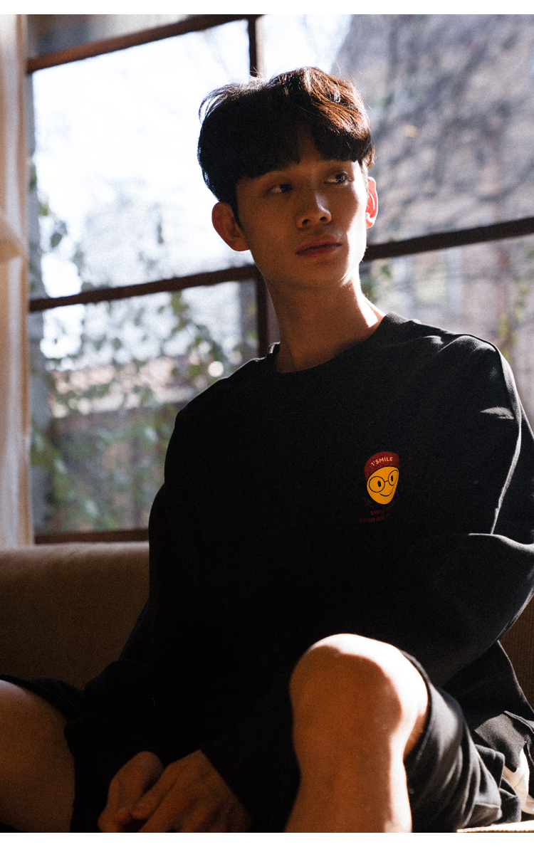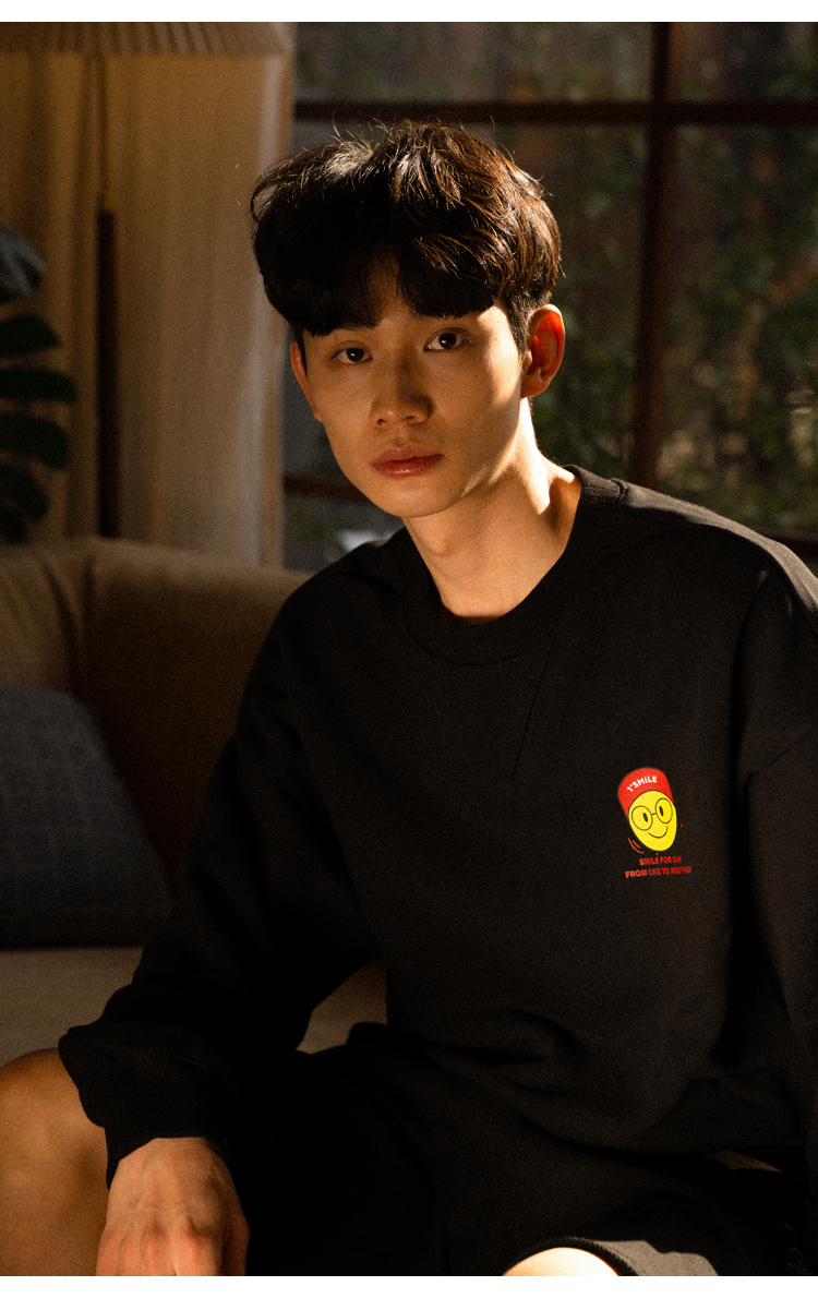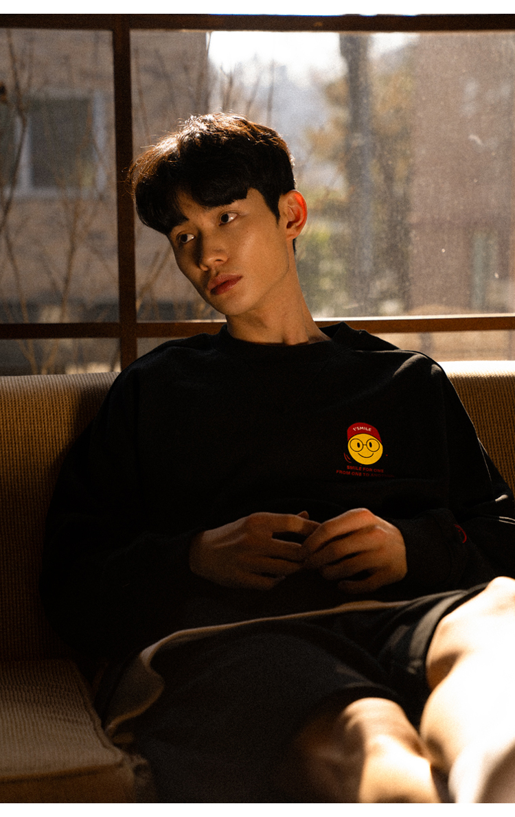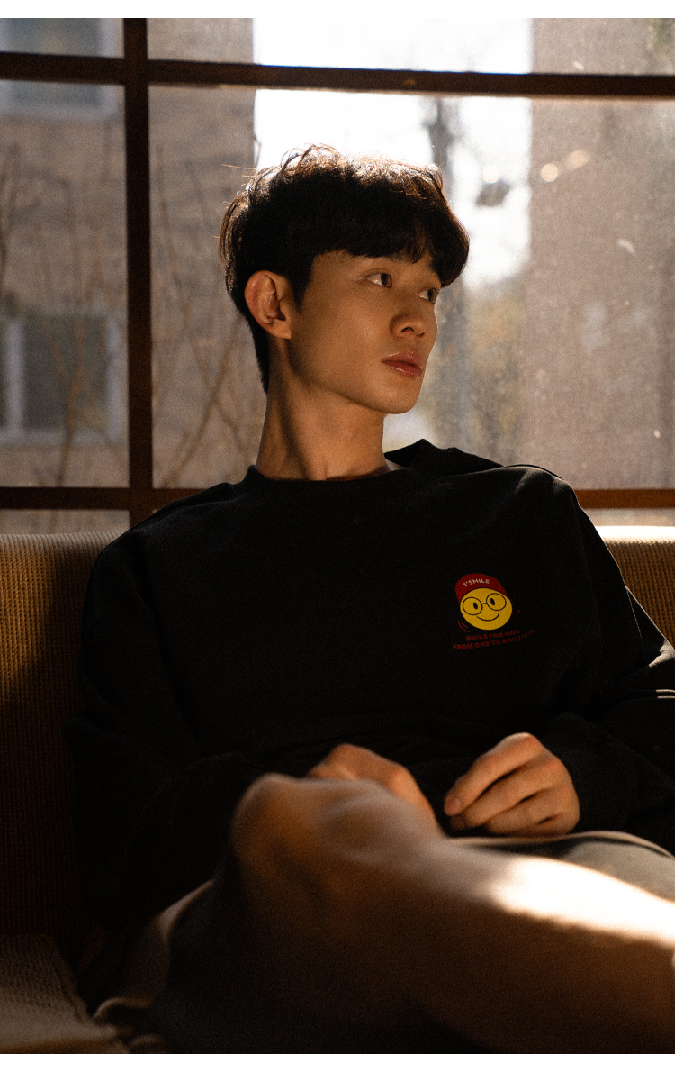 해피캘리 레글런 피그먼트 맨투맨 스모크블랙