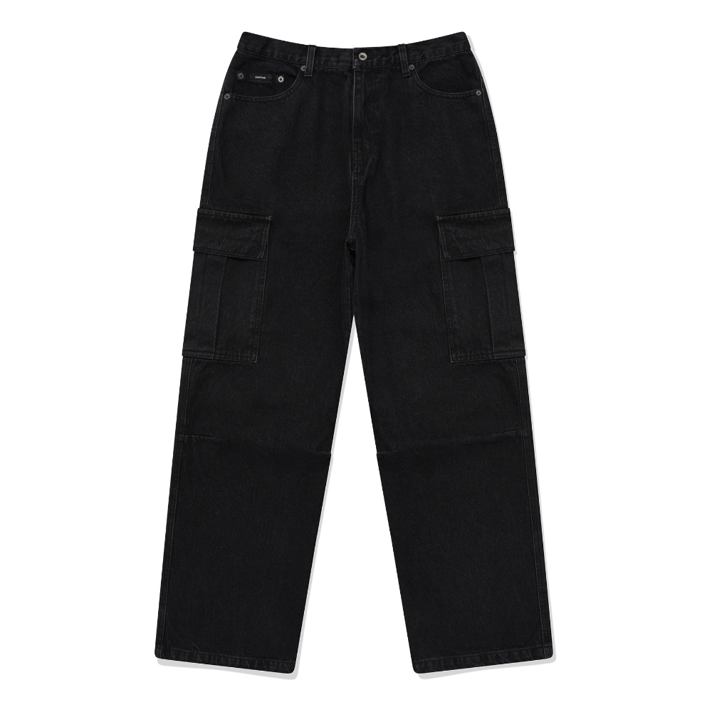 KAEISS RAVEN SOARING COATING DENIM CARGO PANTS - BLACK