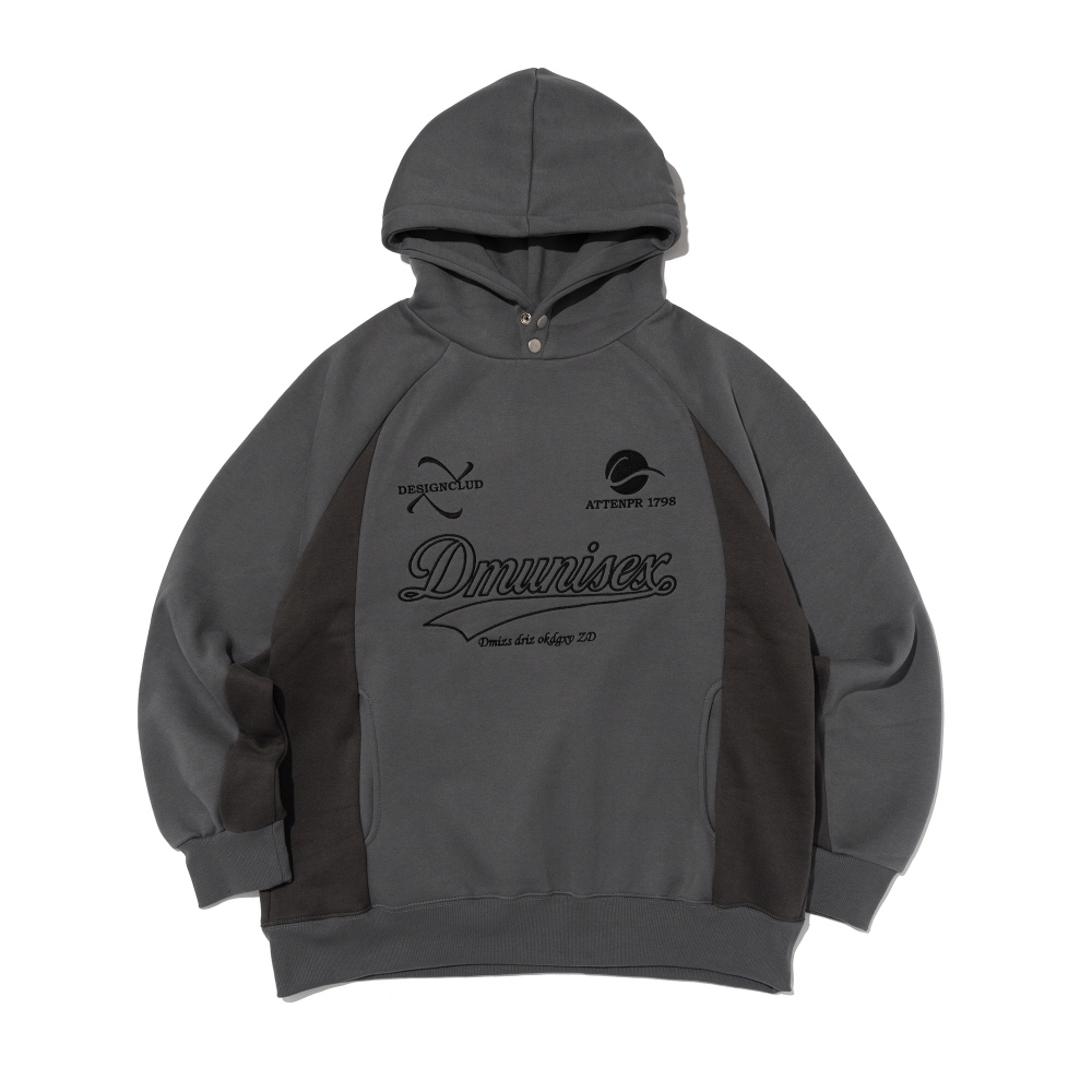 오버핏 후드 배색 엠보자수 후드 블랙(FCF3TS645M)