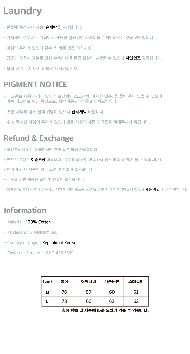 여유로운 품과 드롭숄더 패턴으로 제작되어 오버핏으로 연출 가능한 남녀 공용 아이템입니다