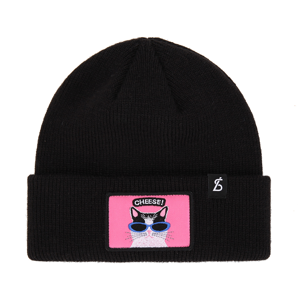 STUD CROSS UNCUFFED BEANIE_BLACK