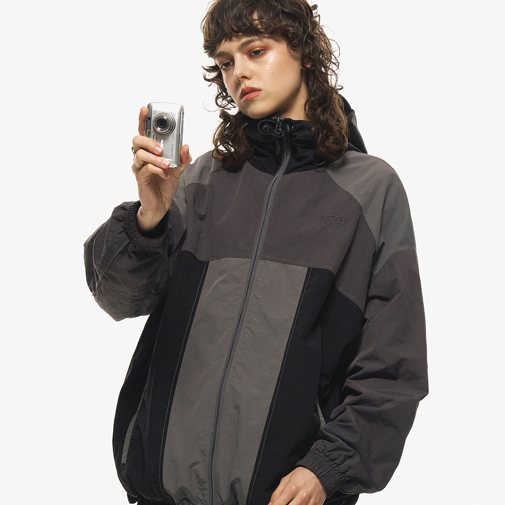 스티치 스트링 후드윈드브레이커 자켓 (차콜)