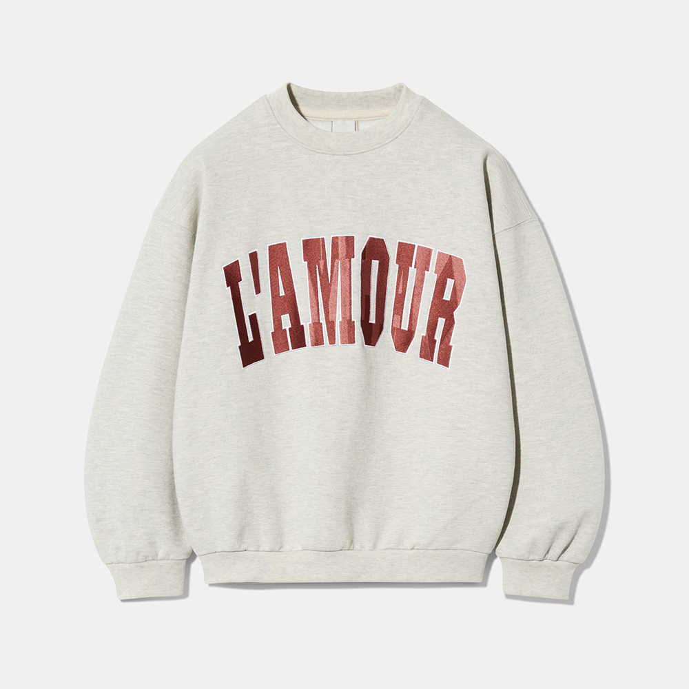 LAMOUR Big Embroidery Stitch Sweatshirt T87 Reddish Oatmeal