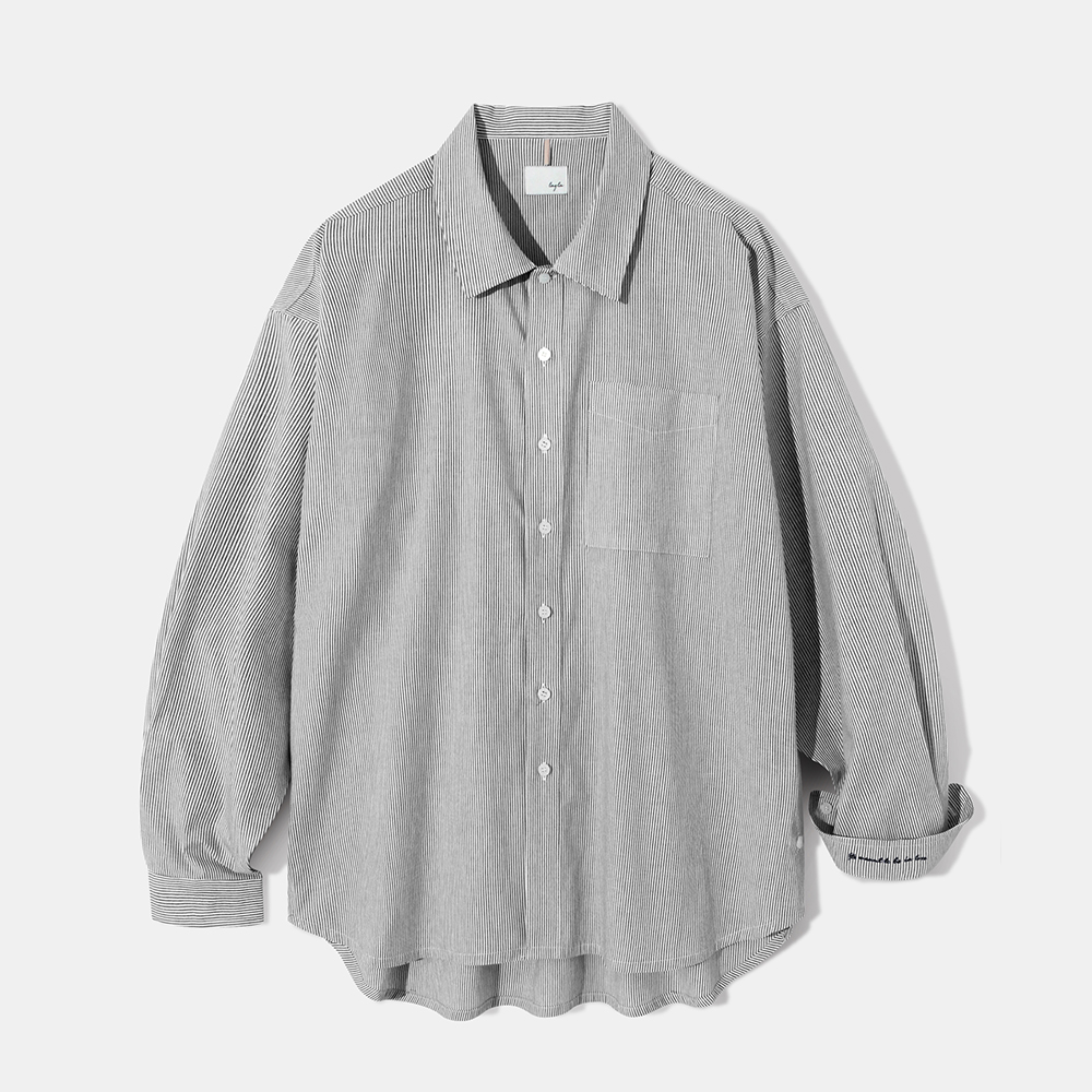 Side slit Stripe Cotton Shirt S139 Black