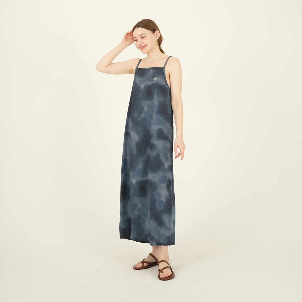 우먼 여름 코튼 민소매 롱원피스 네이비