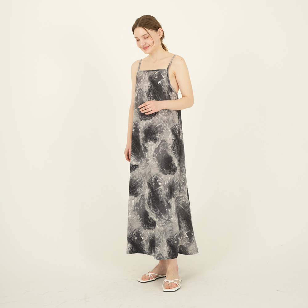 텐셀 린넨 혼방원단으로 흐르는 텍스처가 고급스러운 무드를 자아내고 세미벨라인의 슬리브리스 드레스로 벨르마만의 퀄리티와 슬림한 핏을 연출합니다.