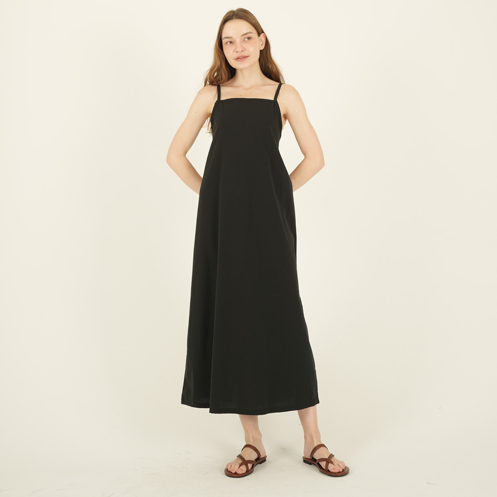 텐셀 린넨 혼방원단으로 흐르는 텍스처가 고급스러운 무드를 자아내고 세미벨라인의 슬리브리스 드레스로 벨르마만의 퀄리티와 슬림한 핏을 연출합니다.