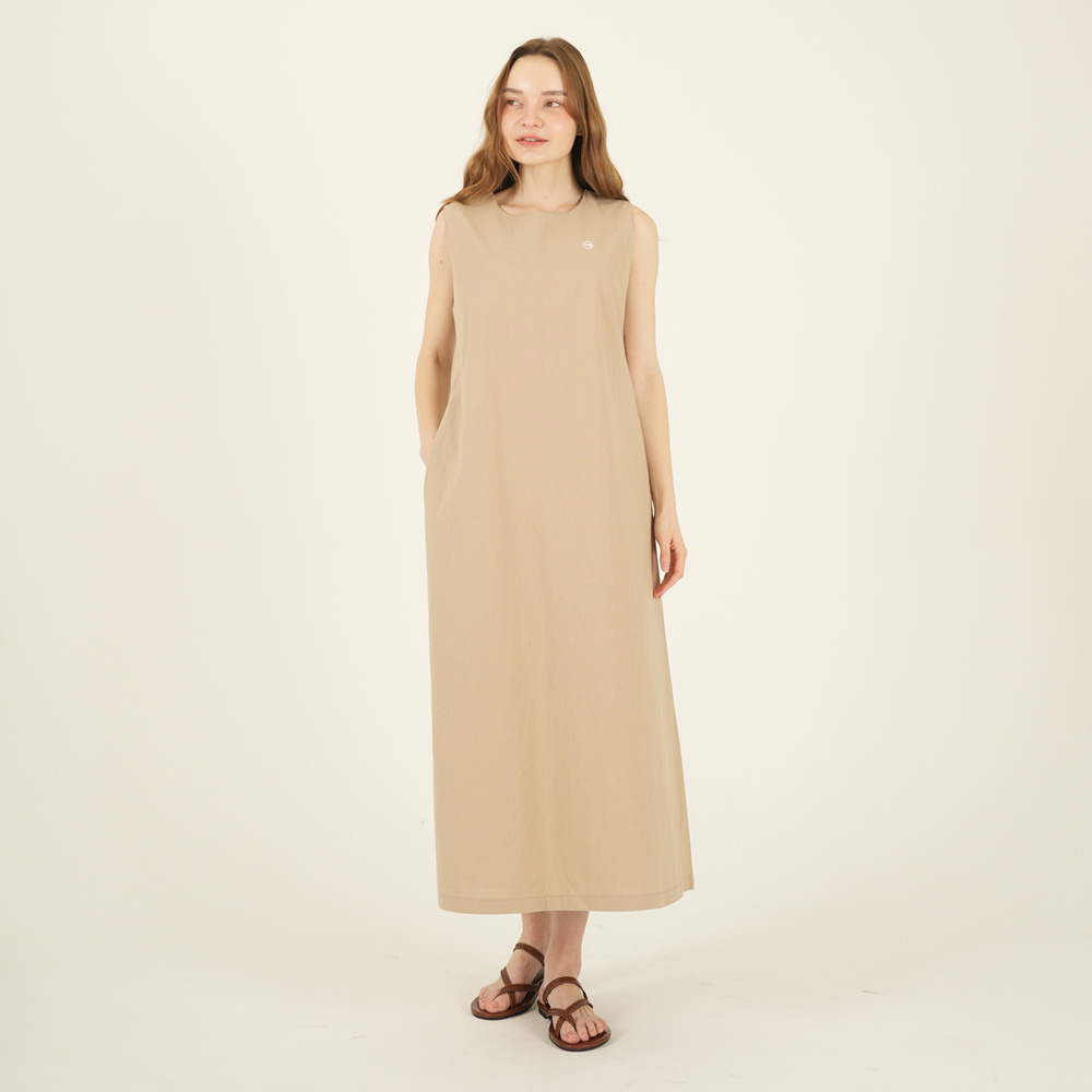 텐셀 린넨 혼방원단으로 흐르는 텍스처가 고급스러운 무드를 자아내고 세미벨라인의 슬리브리스 드레스로 벨르마만의 퀄리티와 슬림한 핏을 연출합니다.