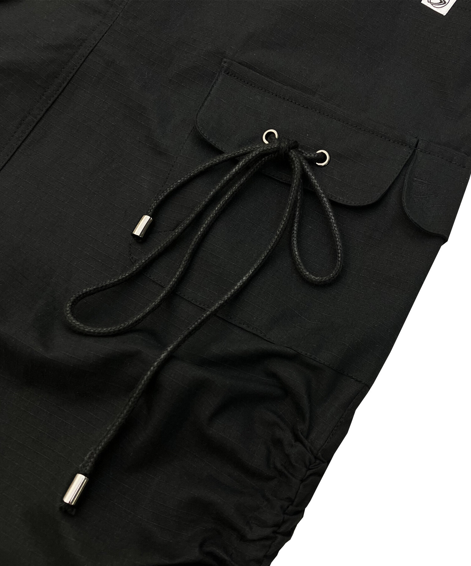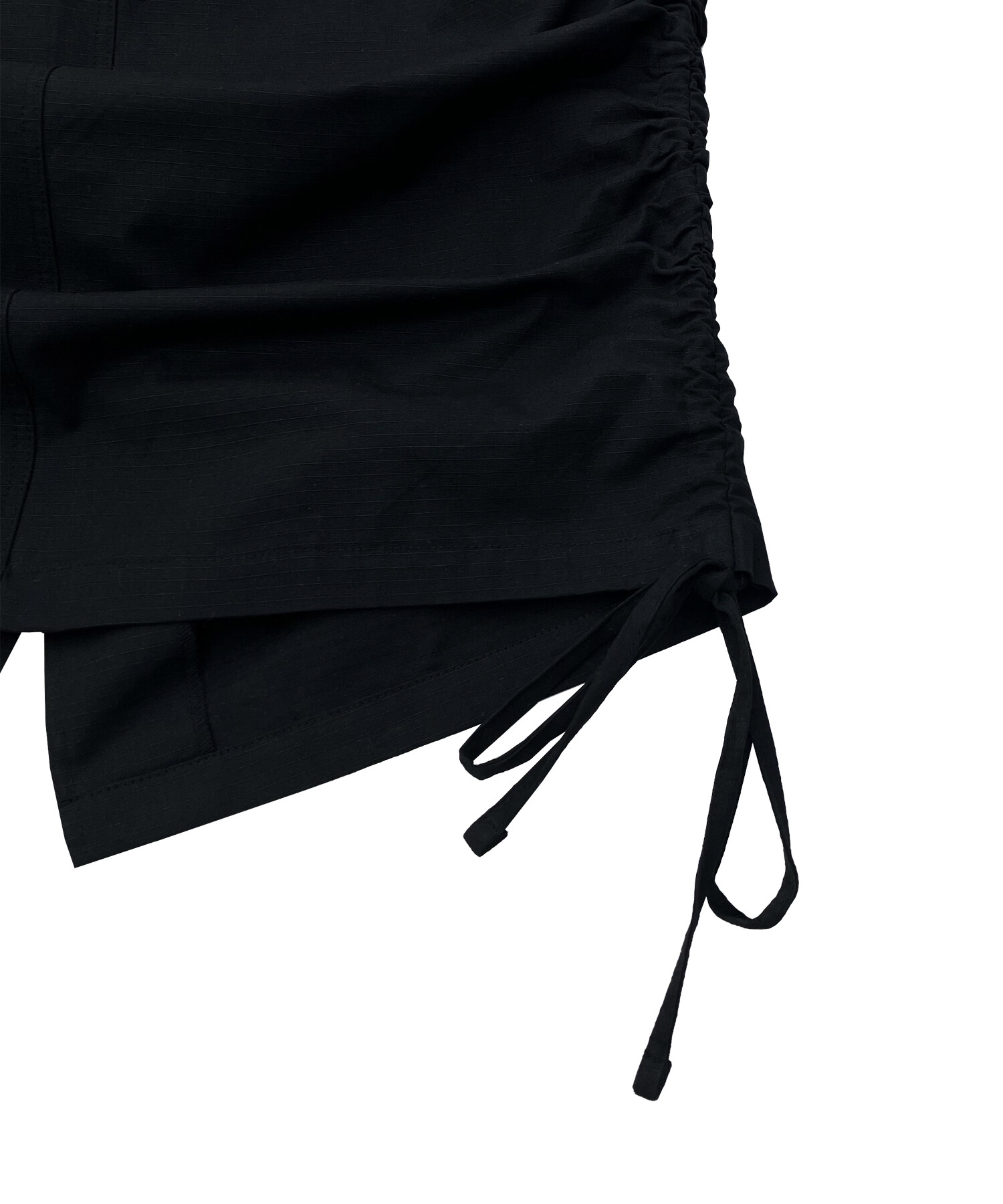 FAIRY UNBALANCED SHIRRING FLARE RUFFLE SKIRT BLACK