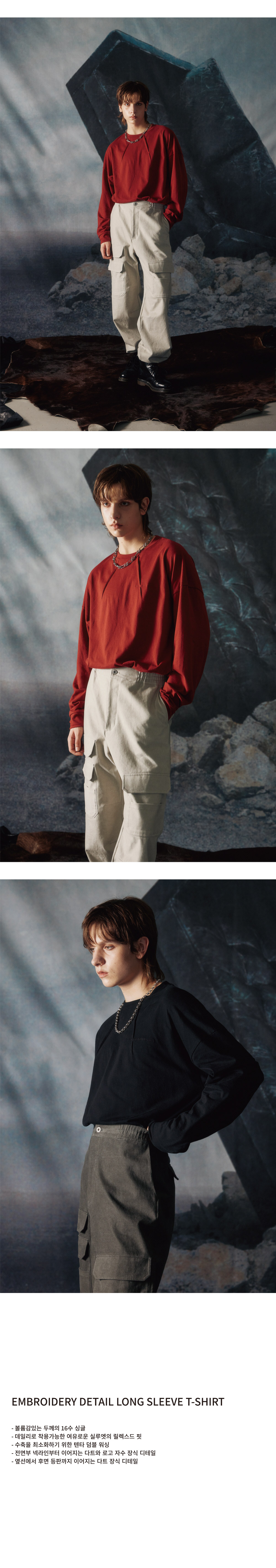 로고 자수 다트 디테일 긴팔 티셔츠 (블랙)