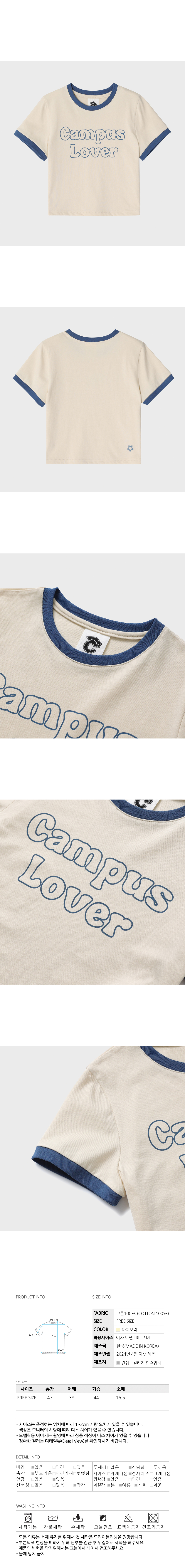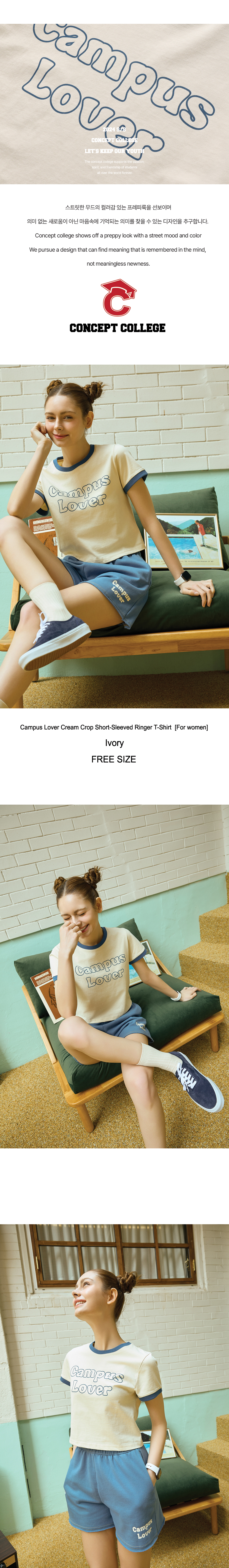 캠퍼스 러버 크림 크롭 반팔 링거 티셔츠 [여성용]