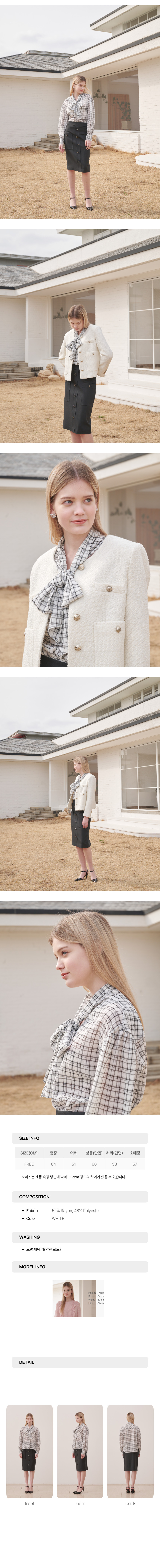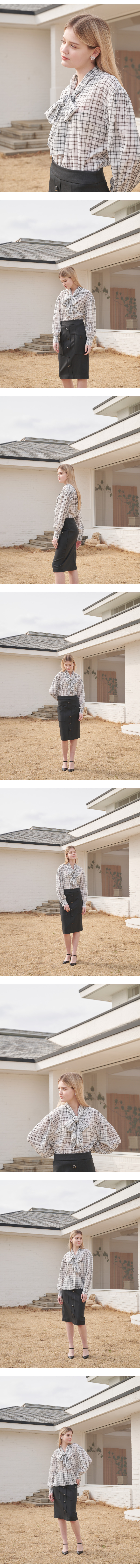 셔링 퍼프 반팔 셔츠 - 그레이 체크