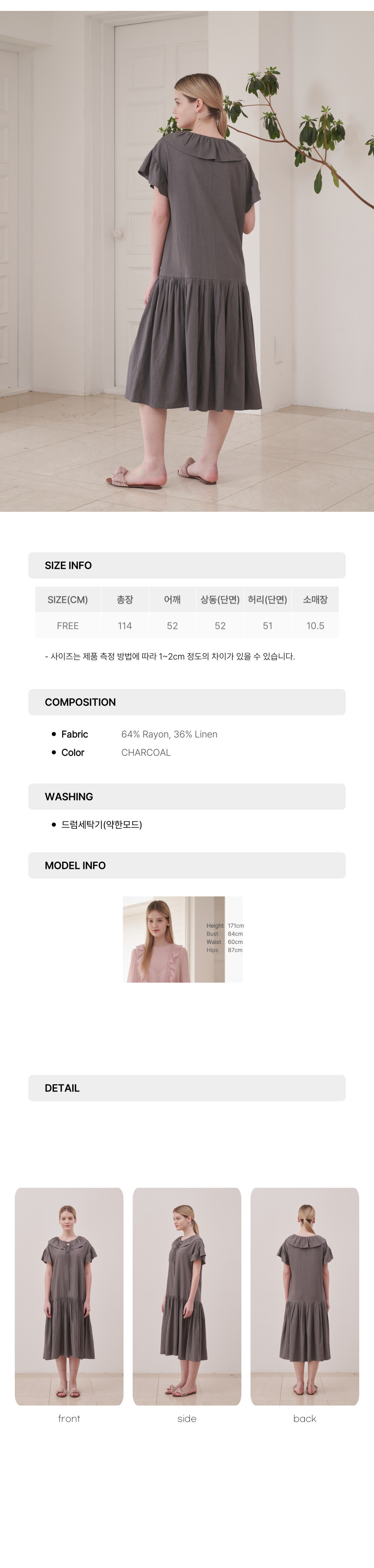 바스락거리는 터치감의 코튼 나일론 혼방소재 원피스예요