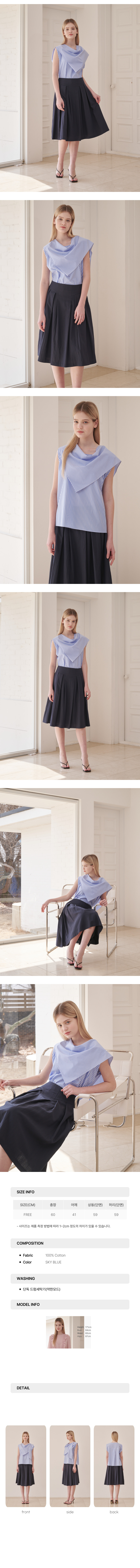 셔링 퍼프 반팔 셔츠 - 라이트 블루