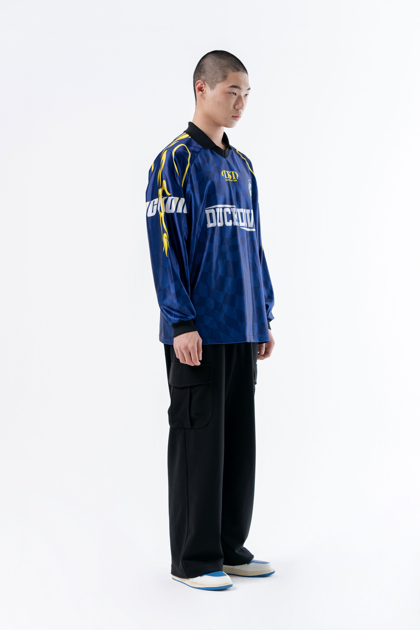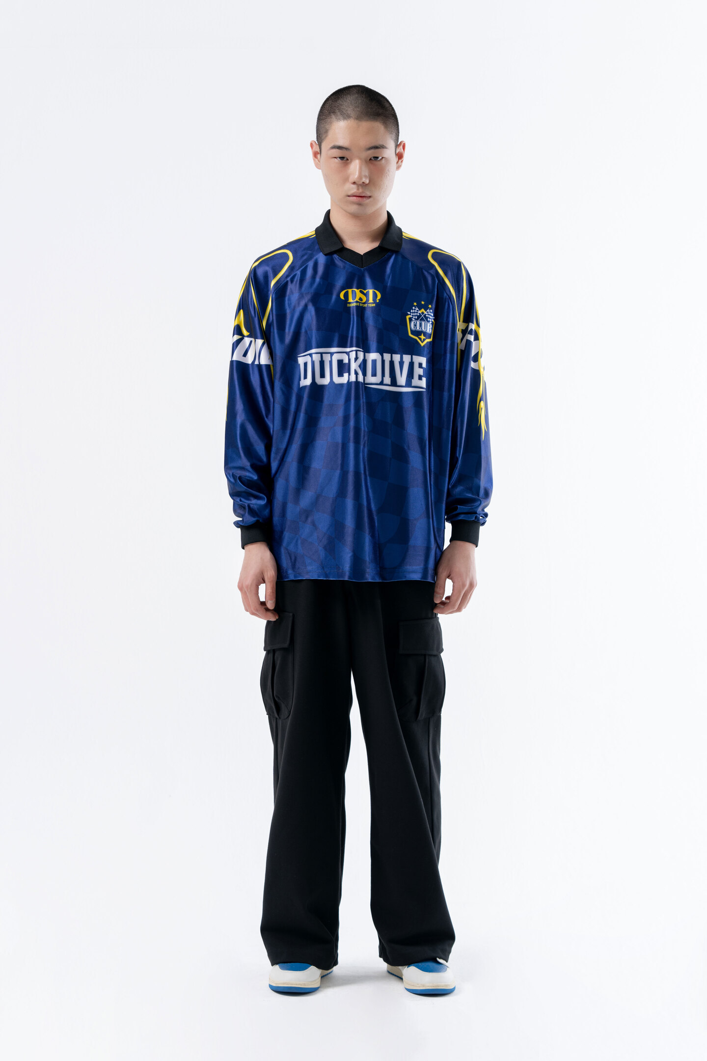 SOCCER TEAM COLLAR JERSEY LONG SLEEVE NAVY