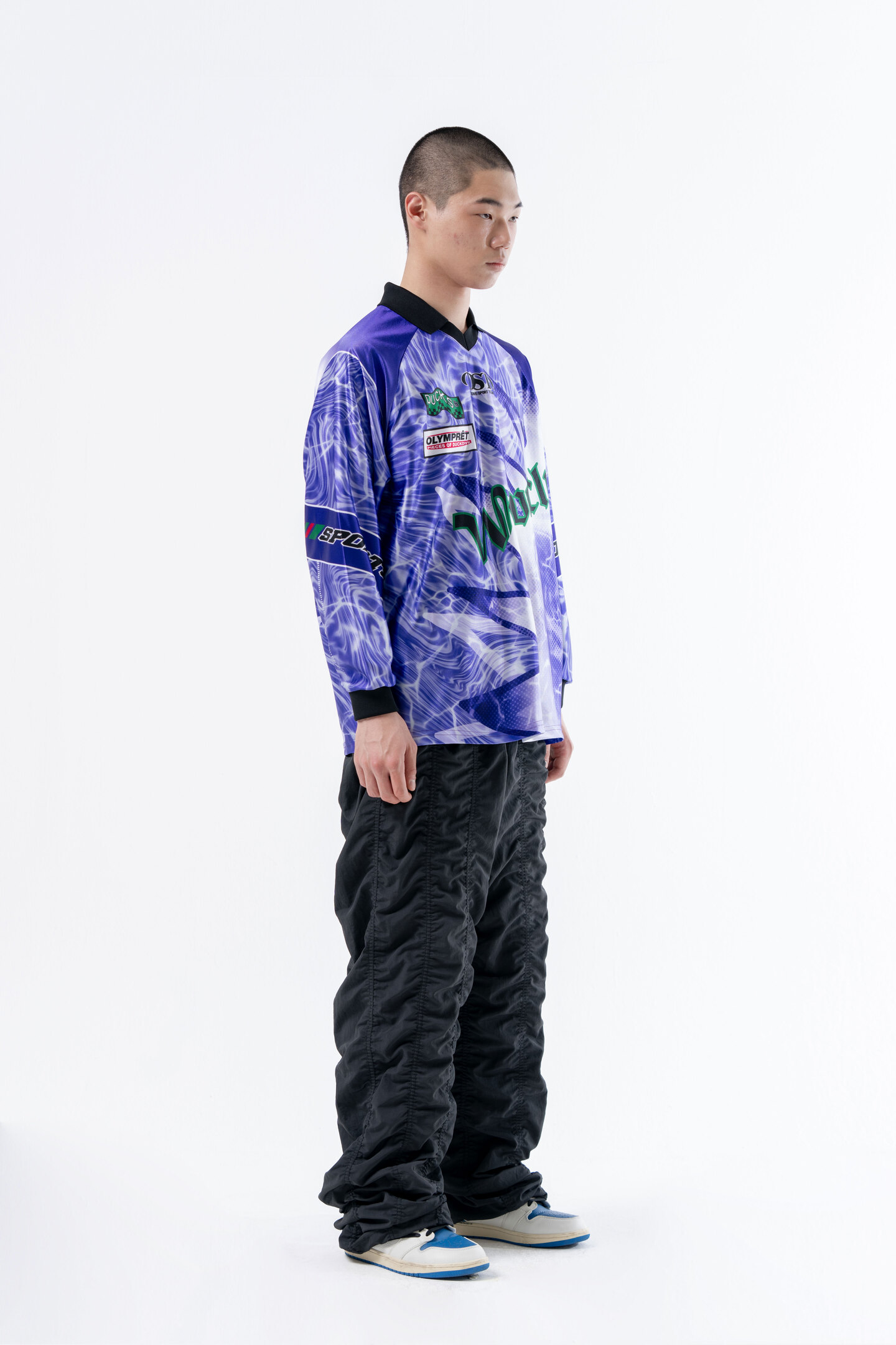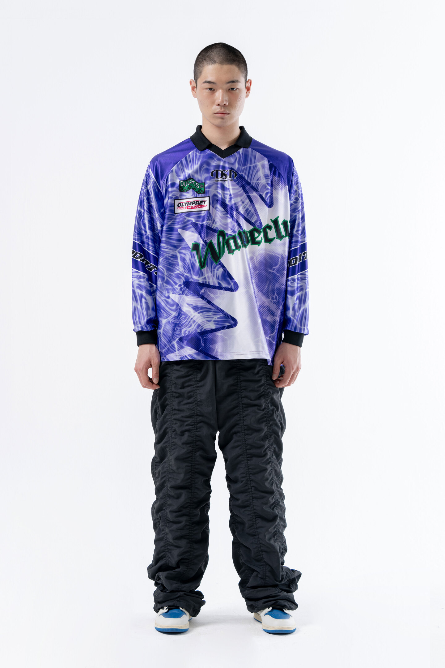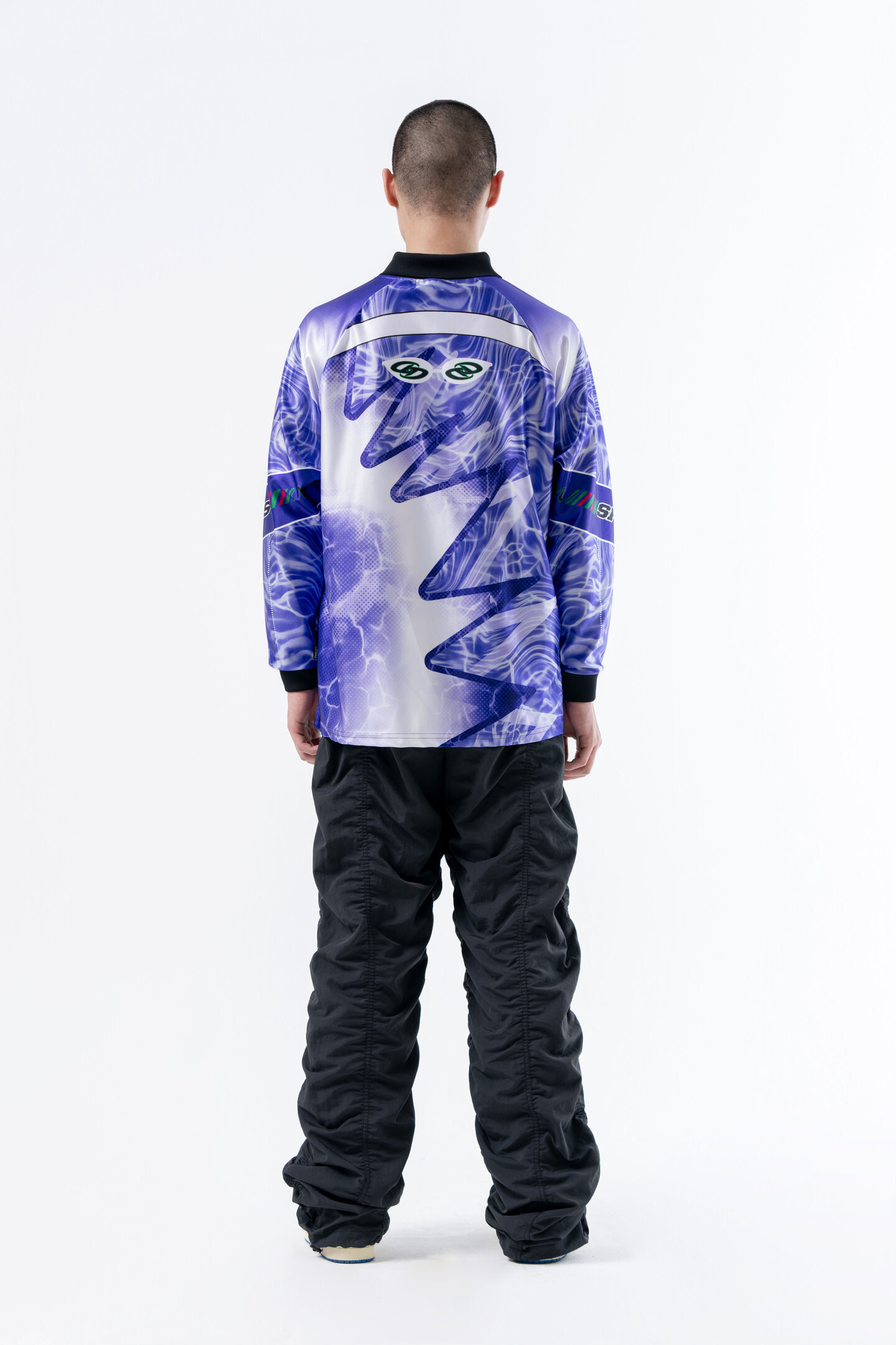 -스포티 무드 심볼 포인트 카라 브이넥 롱슬리브